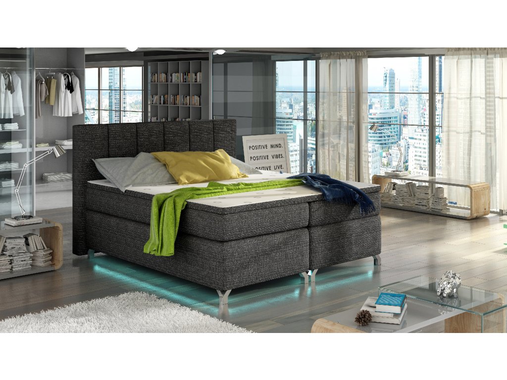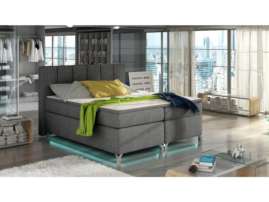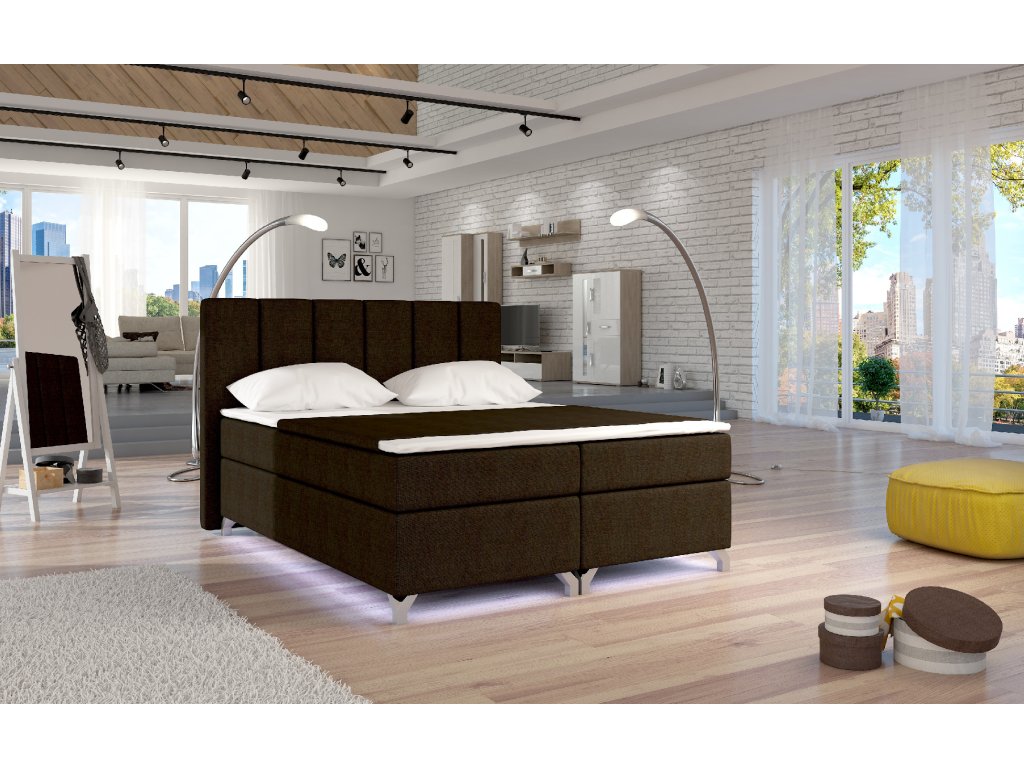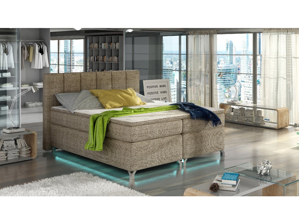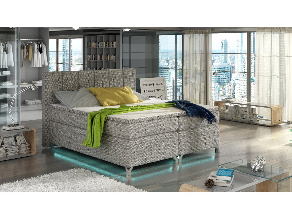 Basilio je nepostradatelným prvkem každé ložnice, který svou pohodlností a funkčností ovlivňuje nejen kvalitu spánku, ale i celkový vizuální dojem místnosti, bez ohledu na její velikost. Jedná se o kontinentální postel typu Boxspring, dostupnou ve třech rozměrech – 140, 160 nebo 180 x 200 cm. Jednoduchá konstrukce nábytku je ozvláštněna vysokým čelem vyplněným pěnou T21 a robustním bonelovým matracem o výšce 20 cm. Matrace je vybavena dvěma vrstvami pěny T25 v horní i dolní části a doplněna o 4centimetrový topper z pěny T21. Mezi klíčové prvky modelu Basilio patří čelo s dekorativním prošíváním, prostorný úložný prostor na lůžkoviny rozdělený do tří částí a široká nabídka barevných provedení. Nejvýraznějším dekorativním prvkem tohoto modelu je možnost doplnění o LED osvětlení. Pokud vám záleží na maximálním pohodlí, správné podpoře těla při spánku a jedinečné estetice, která rozjasní váš interiér – Basilio bude ideální volbou.