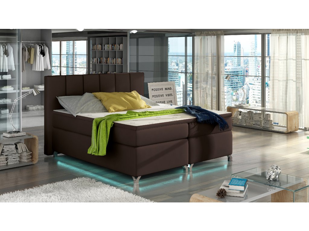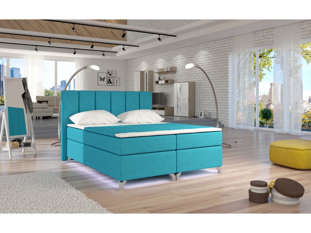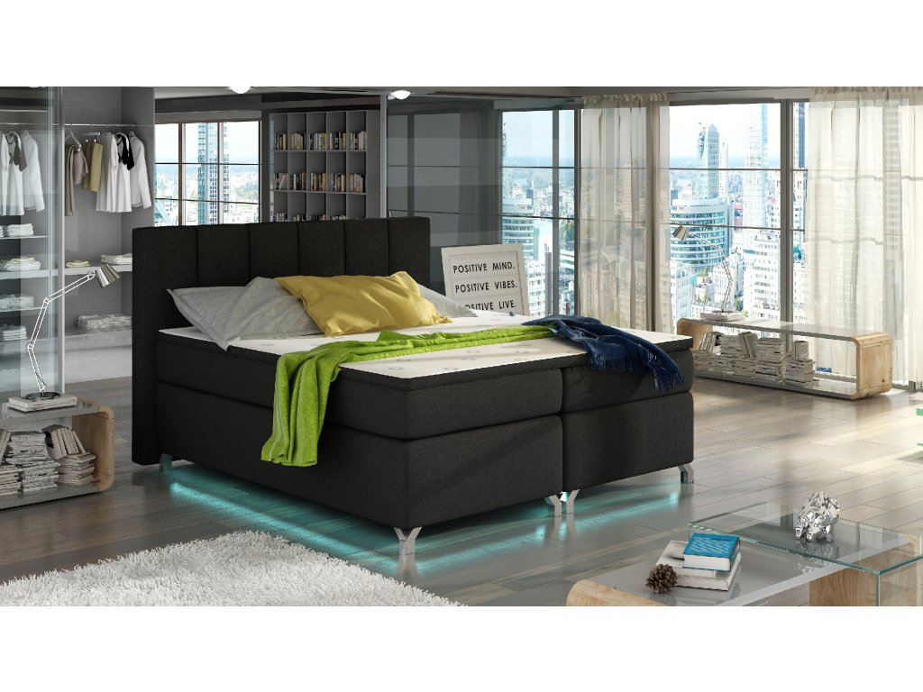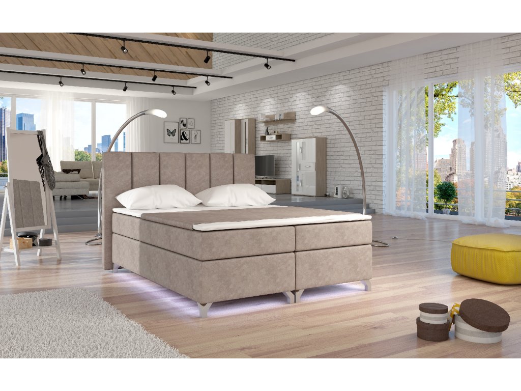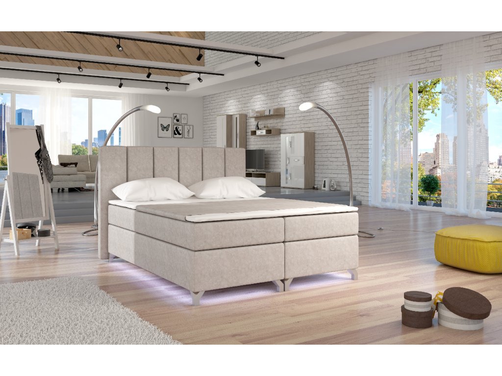 Basilio je nepostradatelným prvkem každé ložnice, který svou pohodlností a funkčností ovlivňuje nejen kvalitu spánku, ale i celkový vizuální dojem místnosti, bez ohledu na její velikost. Jedná se o kontinentální postel typu Boxspring, dostupnou ve třech rozměrech – 140, 160 nebo 180 x 200 cm. Jednoduchá konstrukce nábytku je ozvláštněna vysokým čelem vyplněným pěnou T21 a robustním bonelovým matracem o výšce 20 cm. Matrace je vybavena dvěma vrstvami pěny T25 v horní i dolní části a doplněna o 4centimetrový topper z pěny T21. Mezi klíčové prvky modelu Basilio patří čelo s dekorativním prošíváním, prostorný úložný prostor na lůžkoviny rozdělený do tří částí a široká nabídka barevných provedení. Nejvýraznějším dekorativním prvkem tohoto modelu je možnost doplnění o LED osvětlení. Pokud vám záleží na maximálním pohodlí, správné podpoře těla při spánku a jedinečné estetice, která rozjasní váš interiér – Basilio bude ideální volbou.