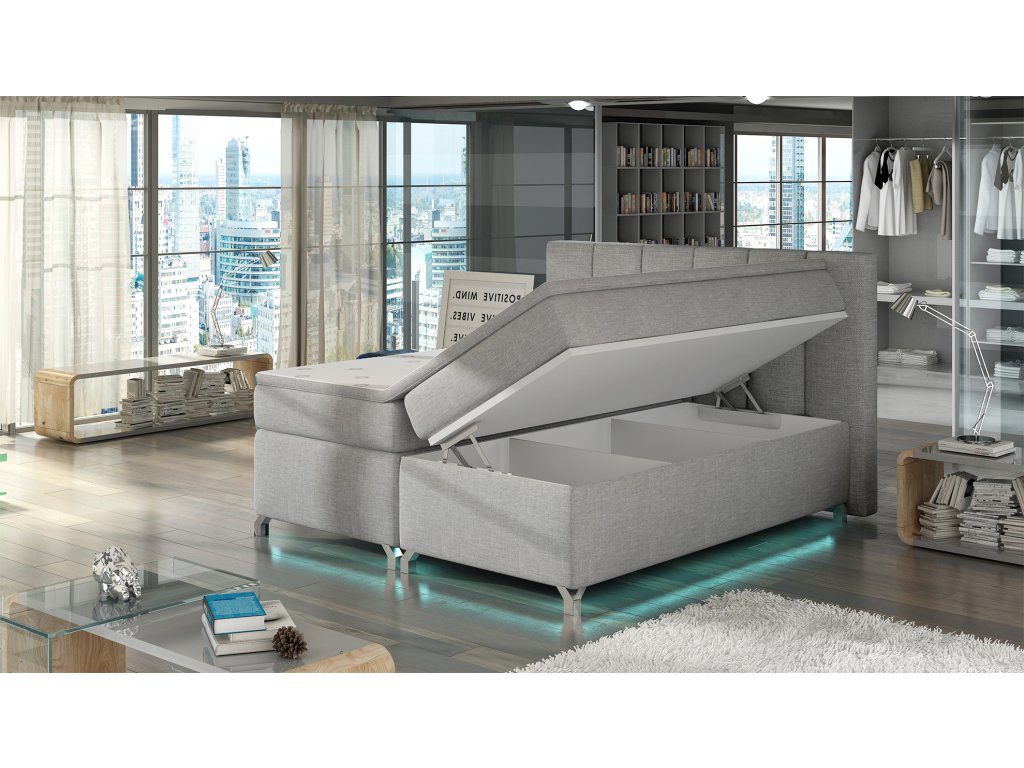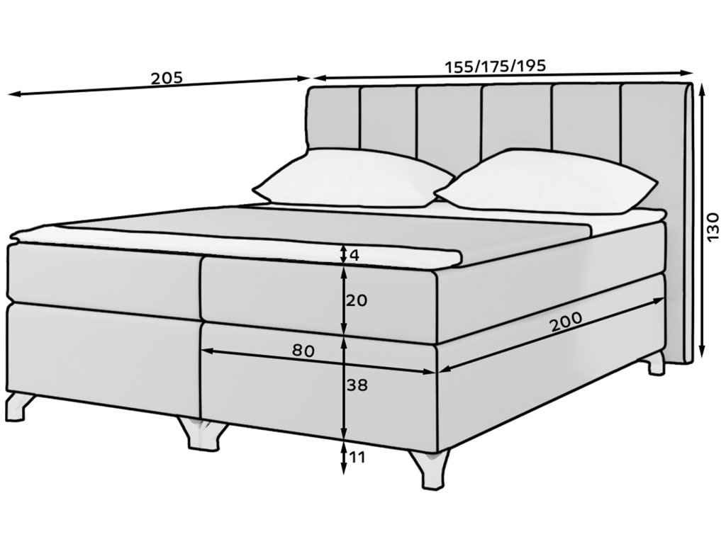 Basilio je nepostradatelným prvkem každé ložnice, který svou pohodlností a funkčností ovlivňuje nejen kvalitu spánku, ale i celkový vizuální dojem místnosti, bez ohledu na její velikost. Jedná se o kontinentální postel typu Boxspring, dostupnou ve třech rozměrech – 140, 160 nebo 180 x 200 cm. Jednoduchá konstrukce nábytku je ozvláštněna vysokým čelem vyplněným pěnou T21 a robustním bonelovým matracem o výšce 20 cm. Matrace je vybavena dvěma vrstvami pěny T25 v horní i dolní části a doplněna o 4centimetrový topper z pěny T21. Mezi klíčové prvky modelu Basilio patří čelo s dekorativním prošíváním, prostorný úložný prostor na lůžkoviny rozdělený do tří částí a široká nabídka barevných provedení. Nejvýraznějším dekorativním prvkem tohoto modelu je možnost doplnění o LED osvětlení. Pokud vám záleží na maximálním pohodlí, správné podpoře těla při spánku a jedinečné estetice, která rozjasní váš interiér – Basilio bude ideální volbou.Doplňkové parametry