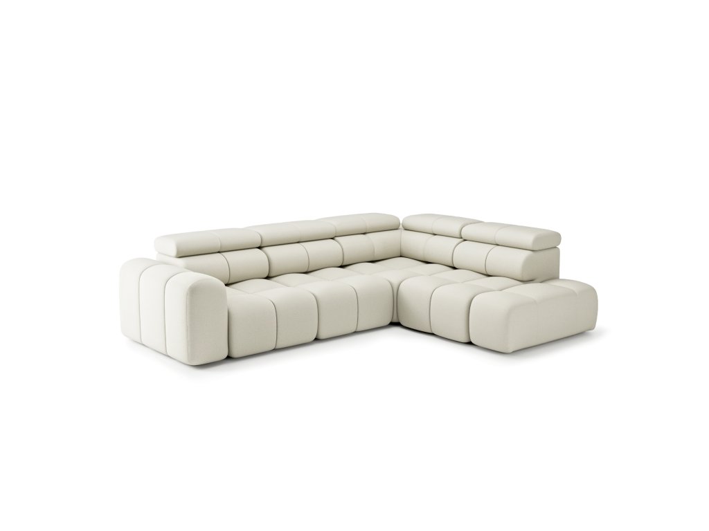 Rohová sedačka Bloom upoutá svými měkkými liniemi a elegantním prošíváním, které dodává celé kompozici hloubku i luxusní vzhled. Geometricky vyvážená forma působí současně moderně i útulně, a proto se stává přirozenou dominantou každého interiéru.