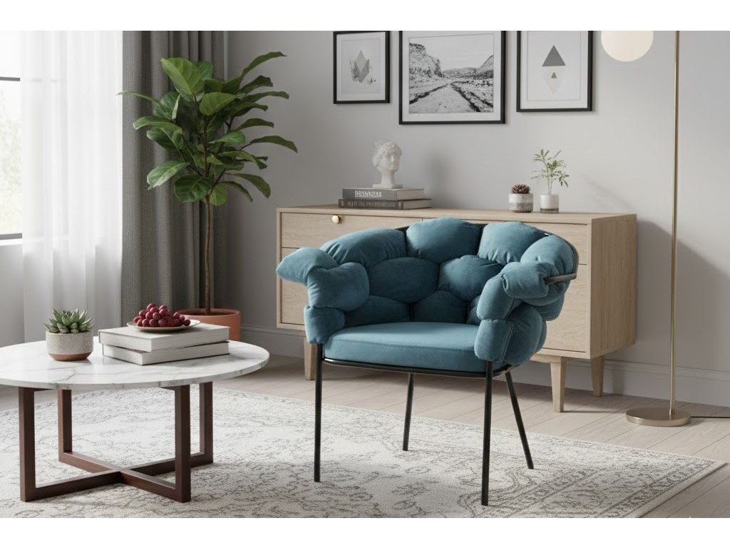 Každý detail je navržen s důrazem na pohodlí i vizuální dojem. Křeslo nabízí příjemné posezení a stává se místem, kde můžete relaxovat, číst nebo si vychutnat klidné chvíle jen pro sebe.