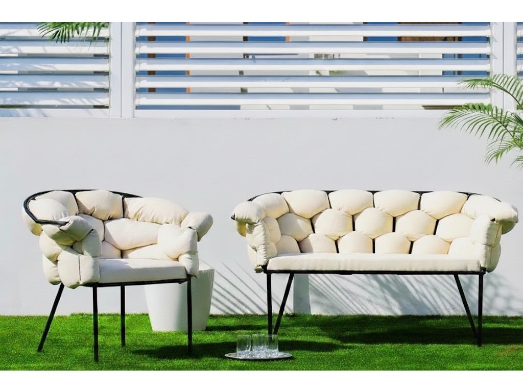 Elegantní linie rámů a moderní outdoor látka, která je navržena právě pro pobyt venku, vytváří harmonický celek – odolný vůči povětrnosti, UV záření i běžnému opotřebení.
