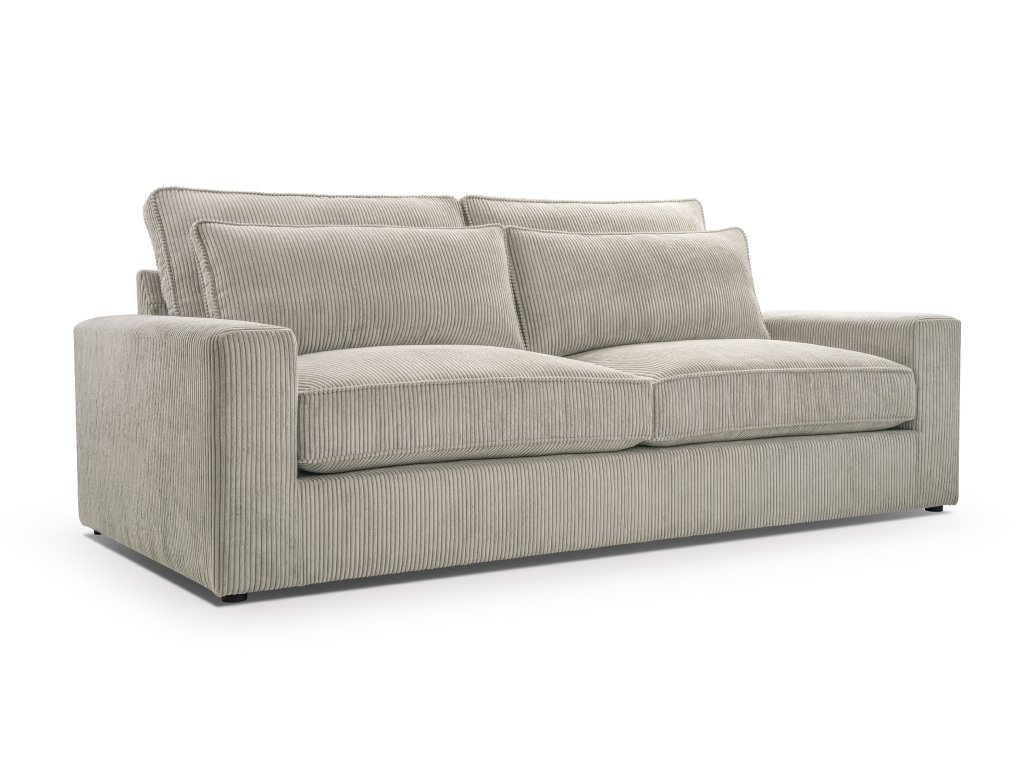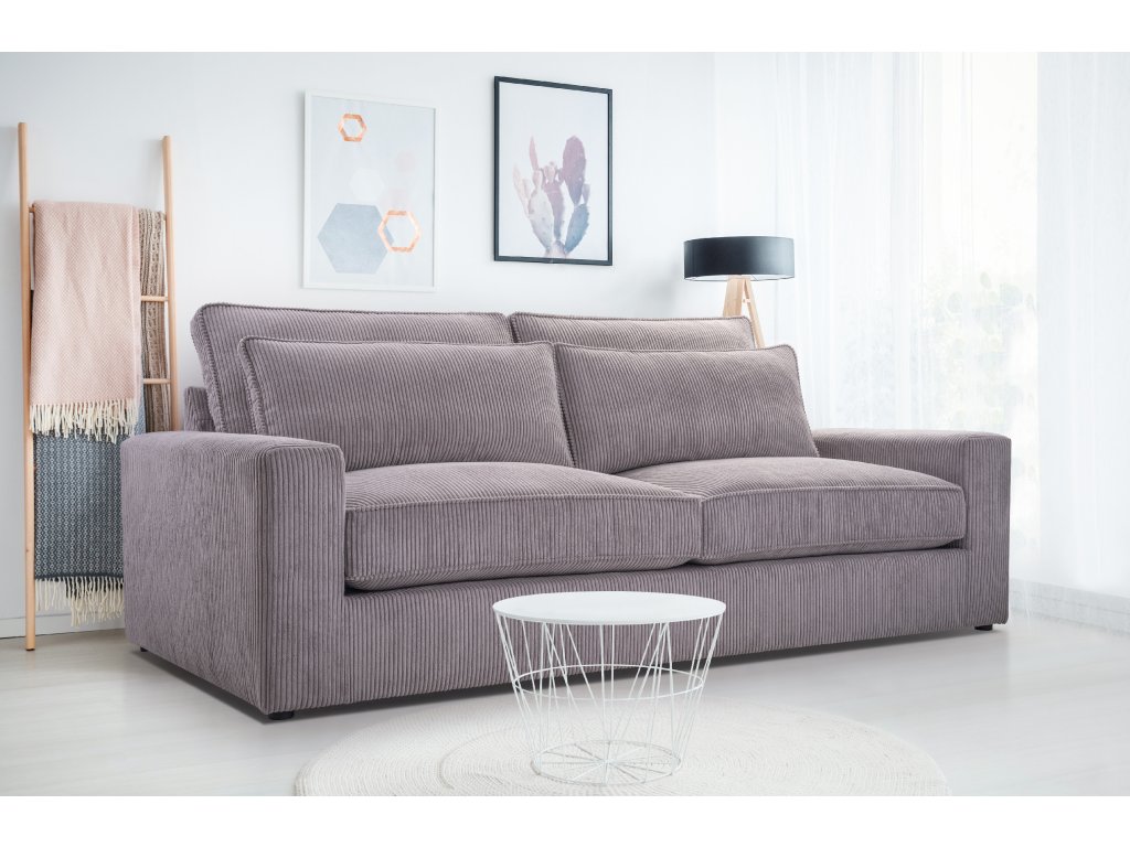 Pohovka na fotografii je potažena látkou LINCOLN - sametová tkanina se strukturou klasického manšestru s jemnými proužky o šířce přibližně 1 cm. Díky vysoké odolnosti proti oděru (100 000 cyklů Martindale) a gramáži 380 g/m² je ideální pro každodenní používání. Látka je příjemně měkká na dotek (Soft Touch) a zároveň zachovává stálost barev a tvar.