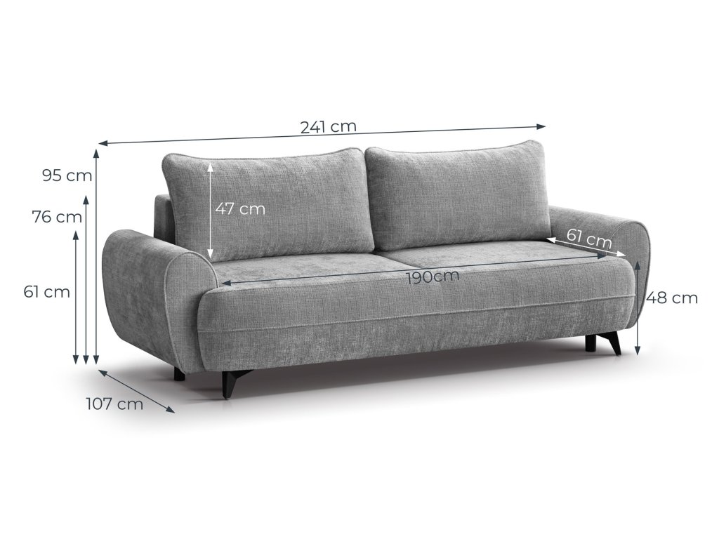 Rozkládací mechanismus typu DL umožňuje snadné a rychlé vytvoření lůžka o rozměru 190 × 142 cm, které poskytne dostatek prostoru pro každodenní i příležitostné spaní. Součástí pohovky je také praktický úložný prostor vhodný pro lůžkoviny nebo sezónní textilie.