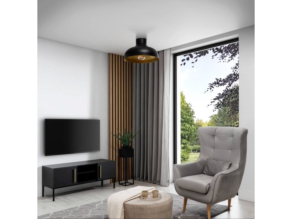 Svítidlo je vyrobeno z odolné oceli, která zaručuje dlouhou životnost. Kombinace černého matného povrchu zvenčí a zlatého vnitřku stínidla vytváří efektní kontrast a navozuje pocit luxusu a tepla.