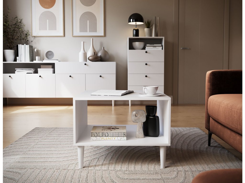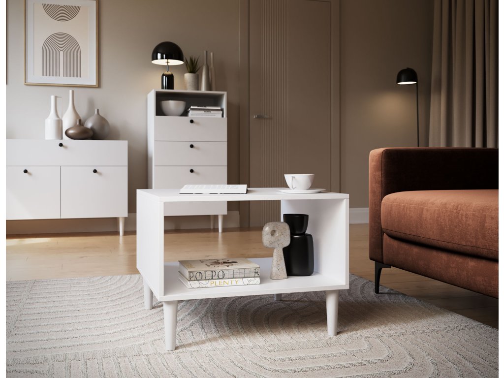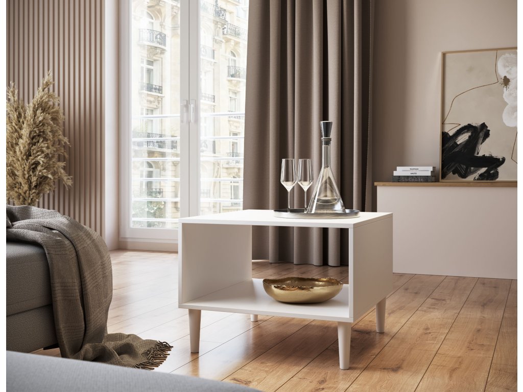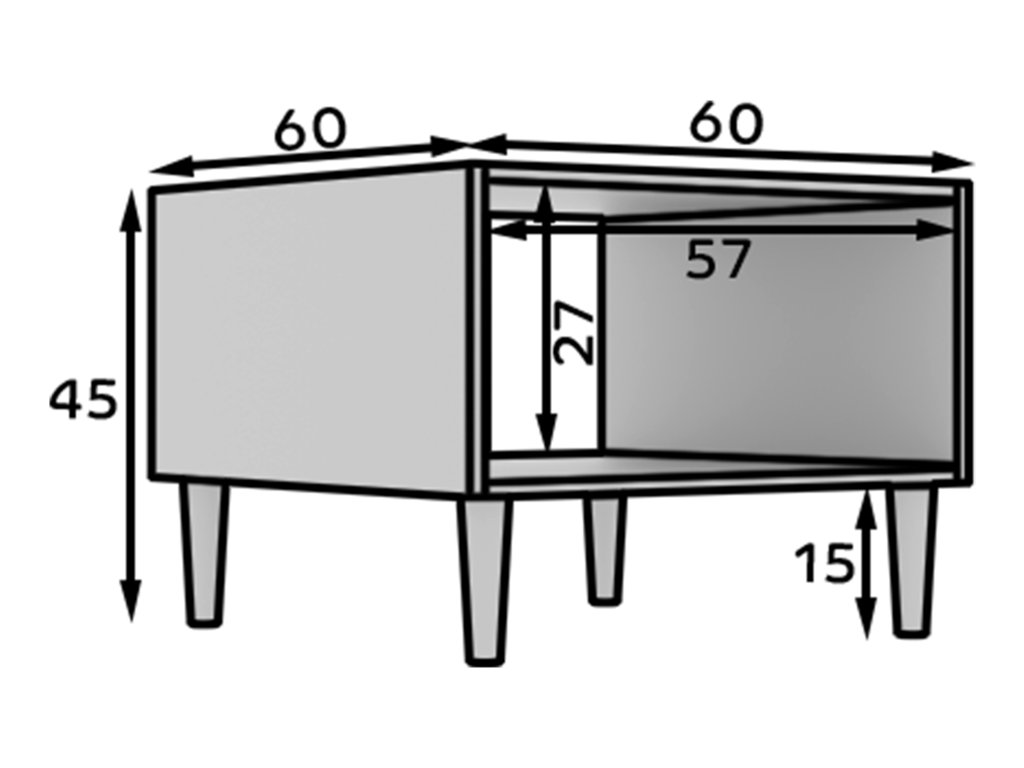 Konferenční stolek Dullum je elegantní a moderní kus nábytku o rozměrech 60 cm x 60 cm a výšce 45 cm. Stolek stojí na pevných dřevěných nohách o výšce 15 cm, které mu dodávají lehkost a stylový vzhled. Kompaktní velikost a minimalistický design zajišťují, že se stolek dokonale hodí do každého interiéru, plnící jak praktickou, tak dekorativní funkci.Doplňkové parametry