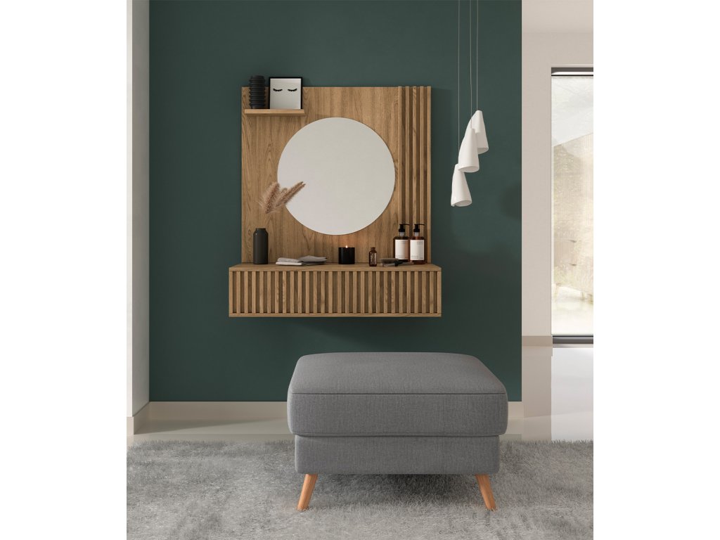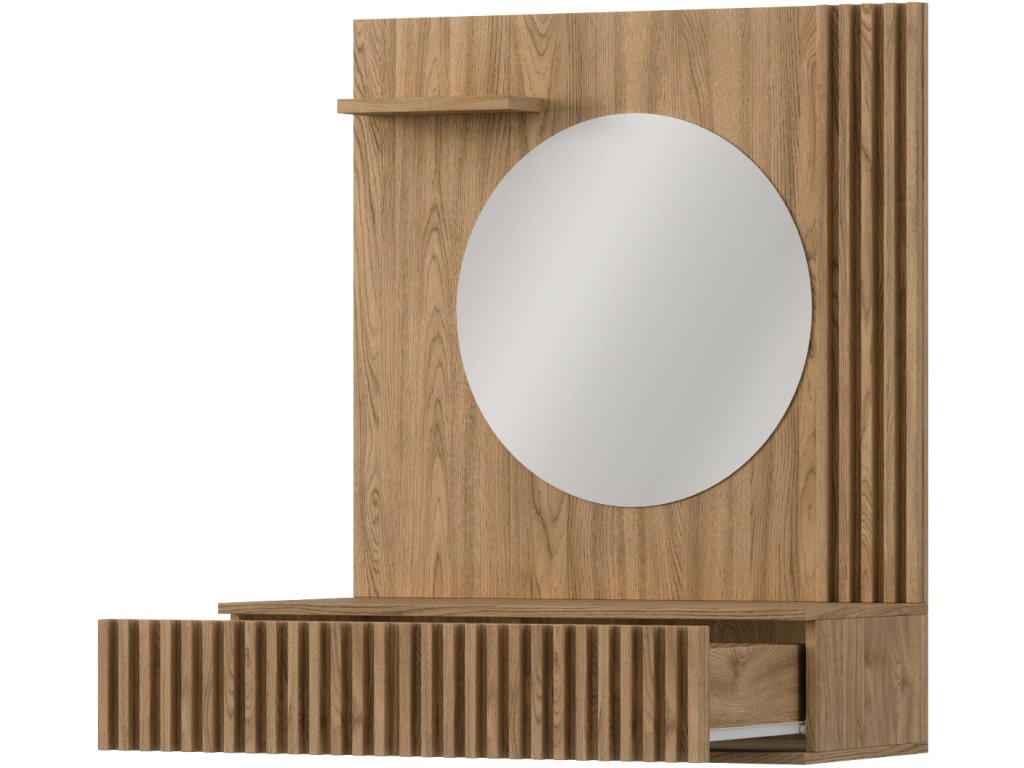 Toaletní stolek Entsian je elegantním a praktickým řešením pro vaši ložnici nebo koupelnu. Tento toaletní stolek, navržený s ohledem na funkčNest a styl, splní vaše očekávání. Má kompaktní rozměry, aby se perfektně vešel do různých prostor. Jeho hloubka je 40 cm, šířka 85 cm a výška 100 cm, což poskytuje dostatečný prostor pro skladování a provádění každodenních pečovatelských rituálů. Navzdory své robustní konstrukci váží pouhých 44 kg, takže se snadNe přenáší a nastavuje. Toaletní stolek Entsian je vyroben z odolné desky, která zaručuje dlouhodobou použitelNest. Zásuvky, kterých jsou až dvě, mají ozdobná frézovaná čela, která dodávají celé konstrukci eleganci a styl. ABS hrana na povrchové úpravě zásuvek poskytuje dodatečNeu ochranu před poškozením a prodlužuje životNest nábytku. Toaletní stolek Entsian má navíc jednu malou polici, která vám umožní mít drobNesti na dosah. Sada obsahuje také zrcadla o průměru 50 cm, která dokonale splyNeu s celkem. Zrcadlová tabule o tloušťce 3 cm je pevná a odolná proti poškození. Celý toaletní stolek Entsian je laděn do krásné barvy Řemeslný dub, která dodává nábytku přirozený a příjemný vzhled. Díky tomu zapadá do různých desigNevých stylů a snadNe se přizpůsobí stávající estetice interiéru. Toaletní stolek Entsian je nejen praktickým kusem úložného nábytku, ale také stylovým dekorativním prvkem, který dodá vašemu prostoru kouzlo a eleganci.Doplňkové parametry