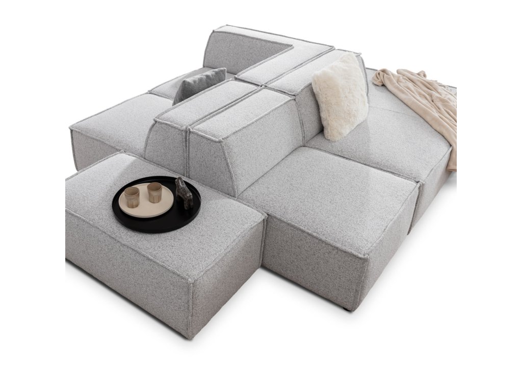 Vyobrazená konfigurace sedací soupravy je navržena jako čistě relaxační model bez funkce rozkladu a úložného prostoru. Pokud však hledáte praktické funkce pro každodenní využití, náš modulární systém obsahuje i specifické elementy vybavené úložným prostorem nebo mechanismem pro rozložení na lůžko.