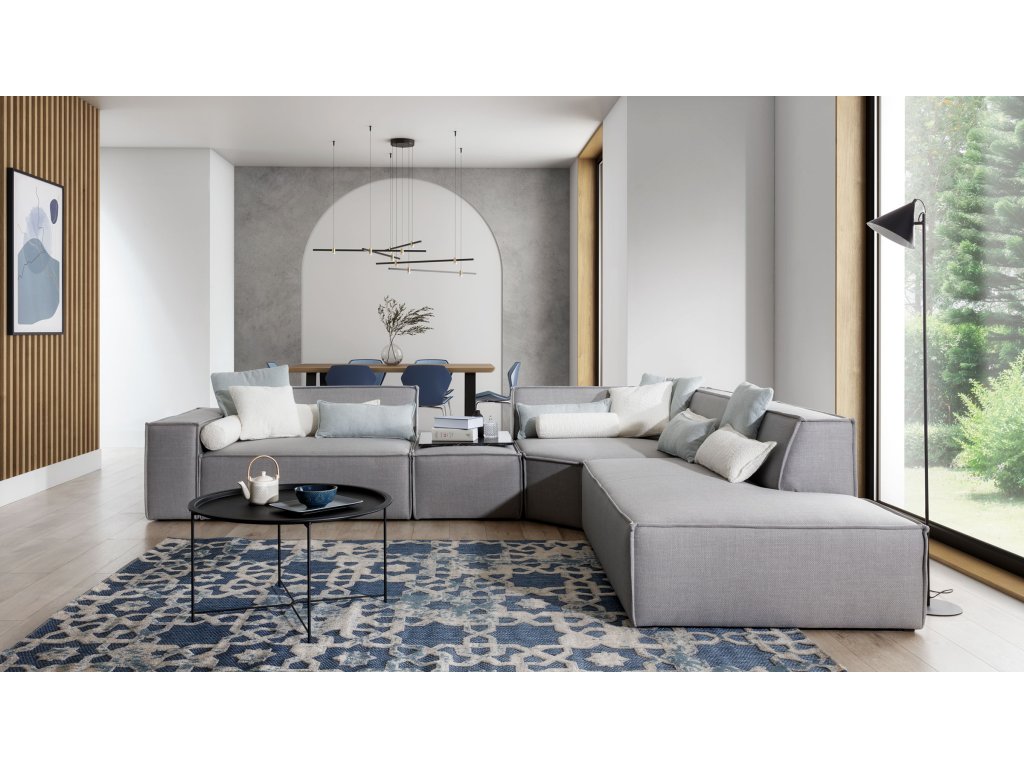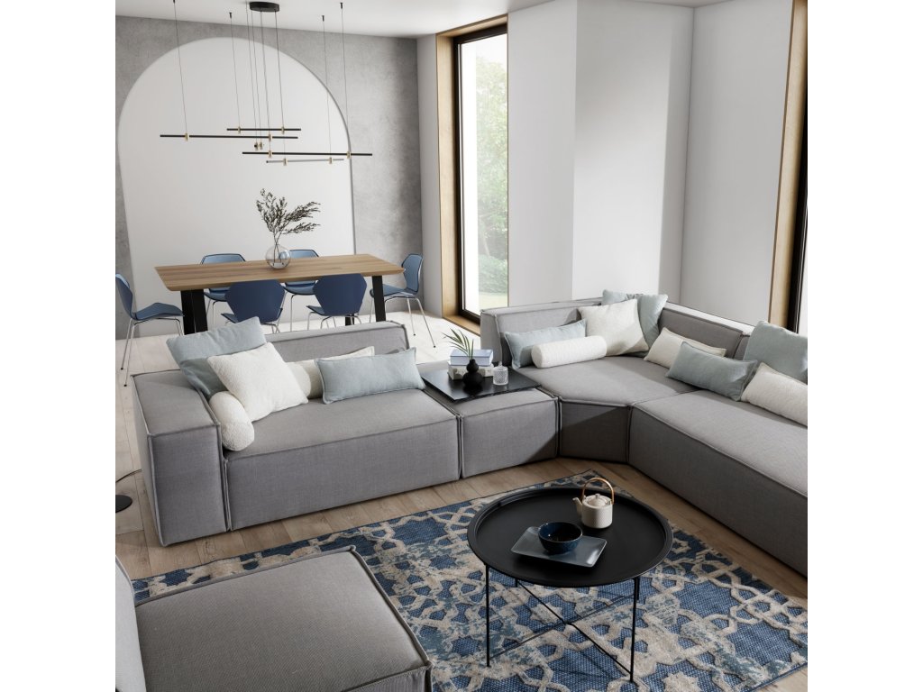 Vyobrazená konfigurace sedací soupravy je navržena jako čistě relaxační model bez funkce rozkladu a úložného prostoru. Pokud však hledáte praktické funkce pro každodenní využití, náš modulární systém obsahuje i specifické elementy vybavené úložným prostorem nebo mechanismem pro rozložení na lůžko.