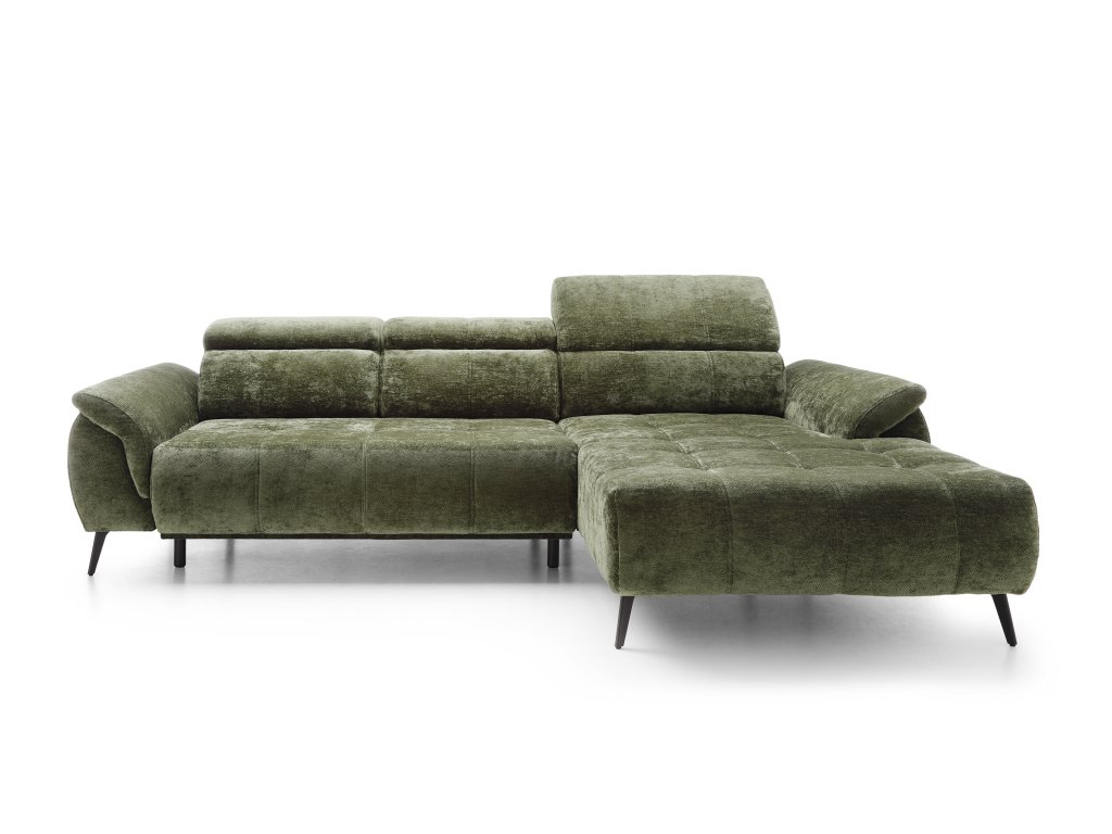 Rohová sedačka Genova představuje spojení originálního designu a nejvyšší funkčnosti. Zaujme profilovanými opěrkami s regulovanými opěrkami hlavy, díky nimž si snadno nastavíte ideální polohu pro odpočinek. Elegantní charakter podtrhují dvojité ozdobné prošívání, jemné vtahy na sedácích, stylové bočnice a vysoké kovové nožky, které dodávají celé konstrukci lehkost a moderní výraz.