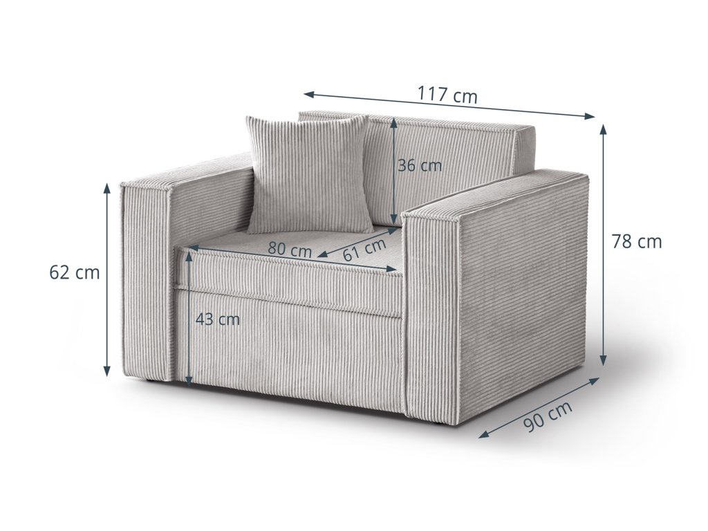 Pohovka DAVE je moderní jednolůžkový model, který spojuje elegantní design, praktičnost a vysoký komfort. Díky kompaktním rozměrům je ideální volbou do menších bytů, studentských pokojů, pokojů pro hosty nebo jako stylový doplněk obývacího pokoje. Elegantní manšestrový vzhled dodává interiéru útulnost a vytváří příjemnou atmosféru.