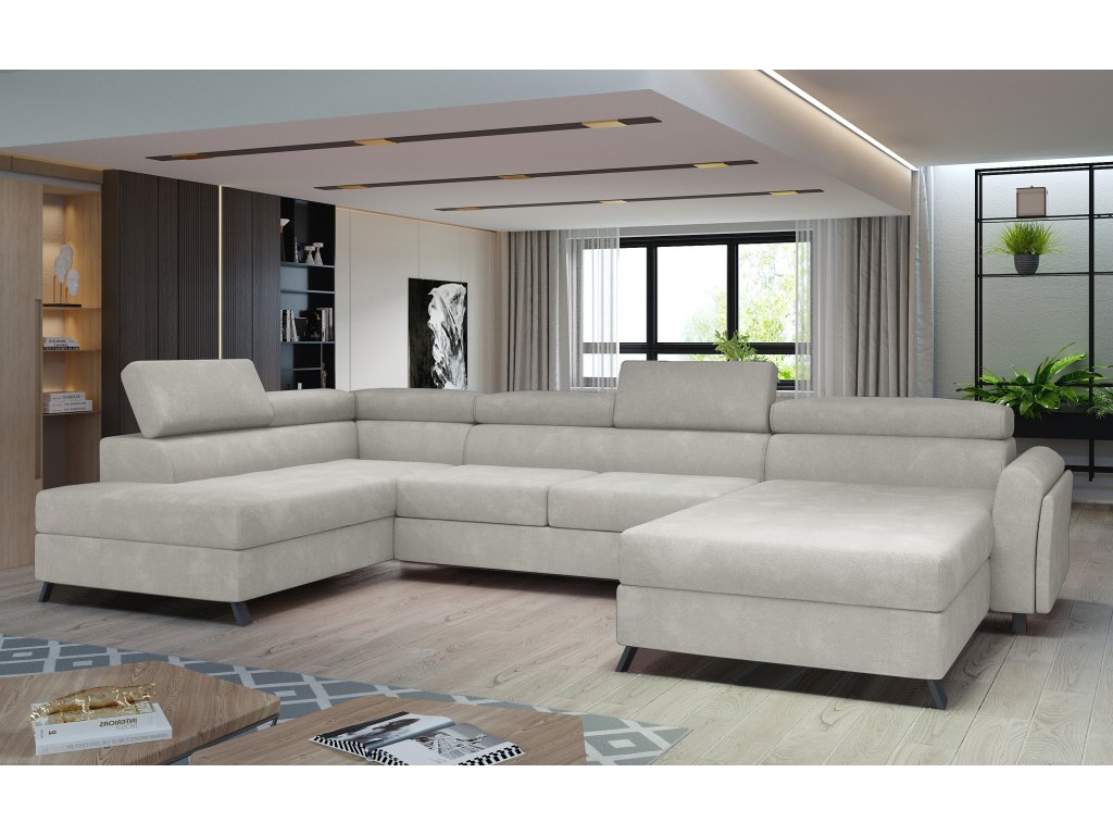 Rohová sedací souprava Josette je symbolem elegance, pohodlí a moderního designu, který se stane dominantou každého prostorného obývacího pokoje. Tento model ve tvaru písmene U s rozměry 370 × 190 × 98 cm nabízí mimořádně velkorysý prostor pro odpočinek, posezení s rodinou i přespání hostů.