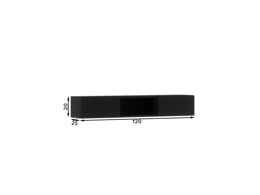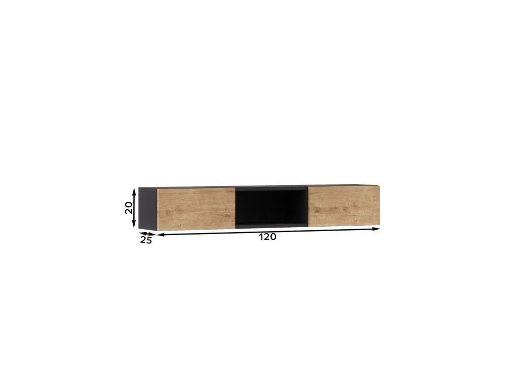 Díky šířce 120 cm a hloubce 25 cm poskytuje police dostatek prostoru pro uložení i vystavení předmětů, zatímco praktické vložky pomáhají udržet pořádek. Součástí balení jsou také expanzní zátky potřebné k zavěšení. Nábytek je vyroben z kvalitní MDF desky s laminovaným povrchem, což zajišťuje dlouhou životnost a snadnou údržbu.