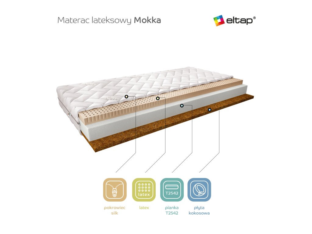 Zdravá páteř je pro naše zdraví klíčová, přesto si to často neuvědomujeme. Brnění končetin, bolesti nohou, rukou nebo hlavy – to vše mohou být projevy problémů s páteří. Je možné jim předcházet pohybem a výběrem správné matrace. Latexová matrace Mokka v potahu Silver je naší odpovědí na vaše potřeby. Produkt je vyroben z nejkvalitnějších materiálů. Silná vrstva latexové pěny, pružná pěna T2542 a kokosová deska tvoří ideální kombinaci pro zlepšení kvality spánku. To vše je uzavřeno ve snímatelném potahu Silver, který spojuje estetiku s praktičností.Doplňkové parametry