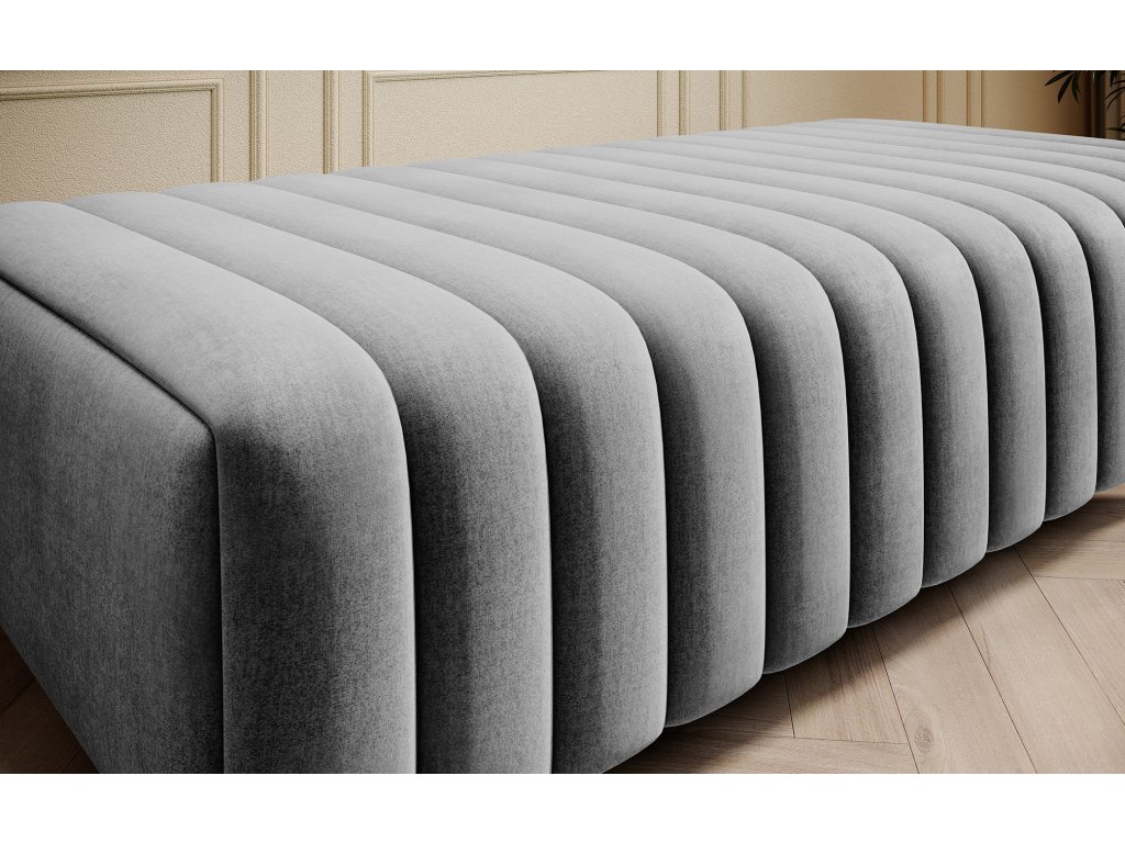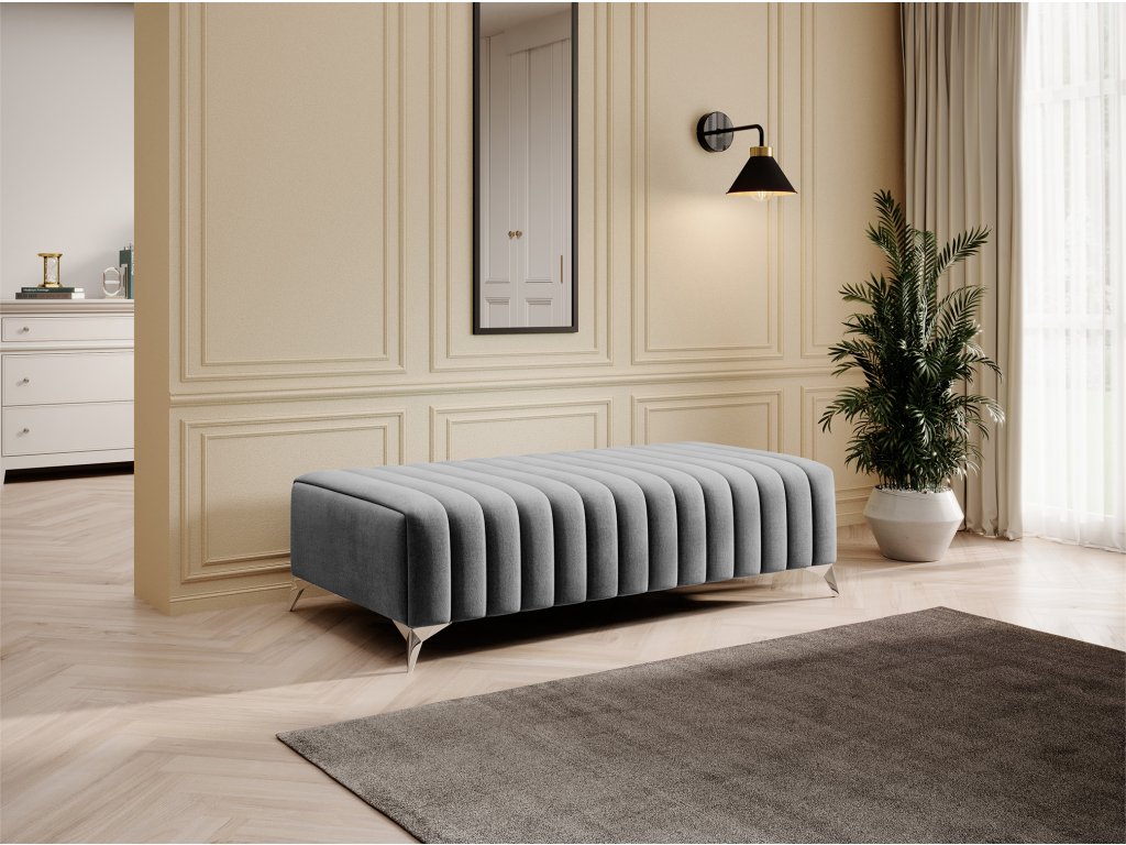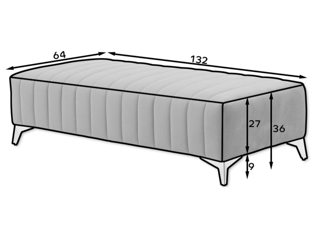 Popište svůj interiér stylovým a pohodlným pufem Laurence. Tento jedinečný sedací vak kombinuje vynikající design s bezkonkurenčním pohodlím, aby vám poskytl chvíle odpočinku a pohodlné sezení. Vlnitá pružina typu B je zárukou odolnosti a stability. Díky tomu si taburet zachovává svůj tvar po mnoho let, aniž by byl vystaven deformaci nebo deformaci. Taburet Laurence je vybaven třemi typy pěny: HR, T3030 a T2130. Tato kombinace zaručuje dokonalou oporu pro vaše tělo a zároveň poskytuje měkkost, která vám umožní plně se uvolnit. S rozměry 64 cm x 132 cm x 36 cm vám tento taburet poskytne prostor k pohodlnému sezení nebo protažení podle vašich potřeb. 9 cm vysoké nohy z pochromované oceli dodávají stabilitu a eleganci a zdůrazňují jedinečný charakter produktu. Maximální nosnost Laurence Pouffe je až 90 kg, což znamená, že se na něm můžete pohodlně usadit bez obav o odolnost. Jeho celková hmotnost je 39 kg, což dále potvrzuje pevnost konstrukce. Další výhodou je estetická dekorace v podobě ozdobného prošívání, která dodává nábytku jedinečný charakter a činí z něj nejen praktický, ale také stylový prvek vašeho interiéru. S pufem Laurence získáte dokonalou kombinaci kvality, odolnosti, elegance a pohodlí. Je to ideální kus nábytku pro ty, kteří ocení vysokou kvalitu a krásu interiéru. Díky němu získá každé místo jedinečné kouzlo a vy si budete moci užít chvíle plné relaxace a potěšení.Doplňkové parametry