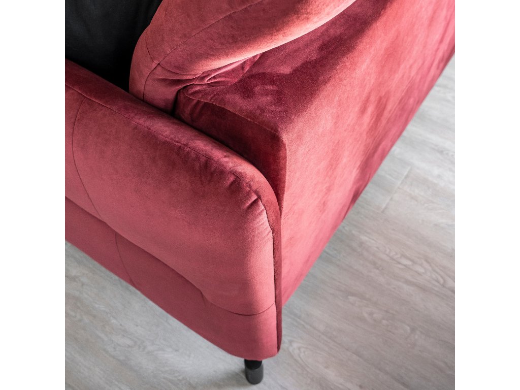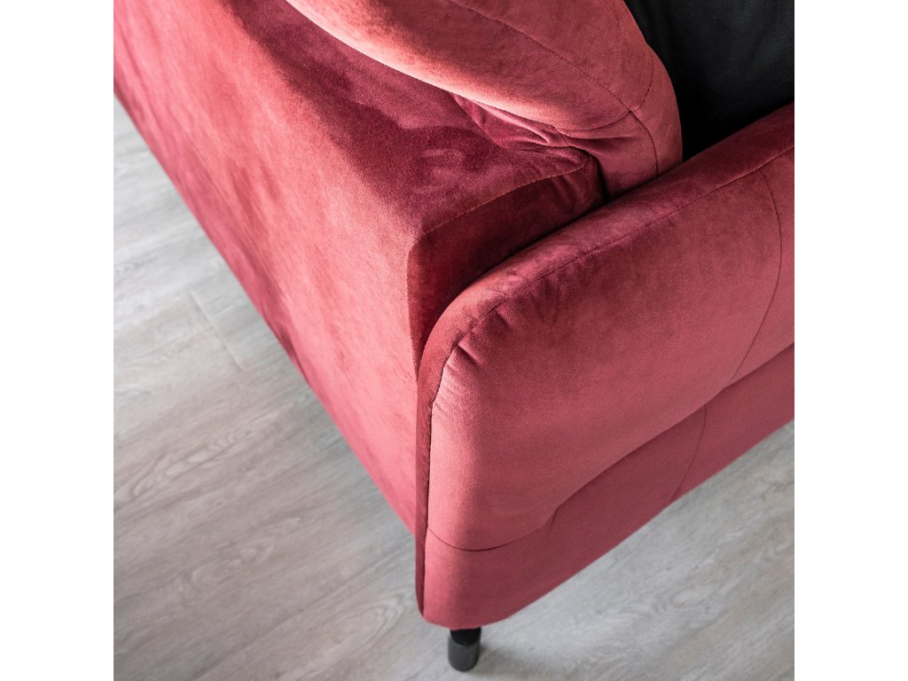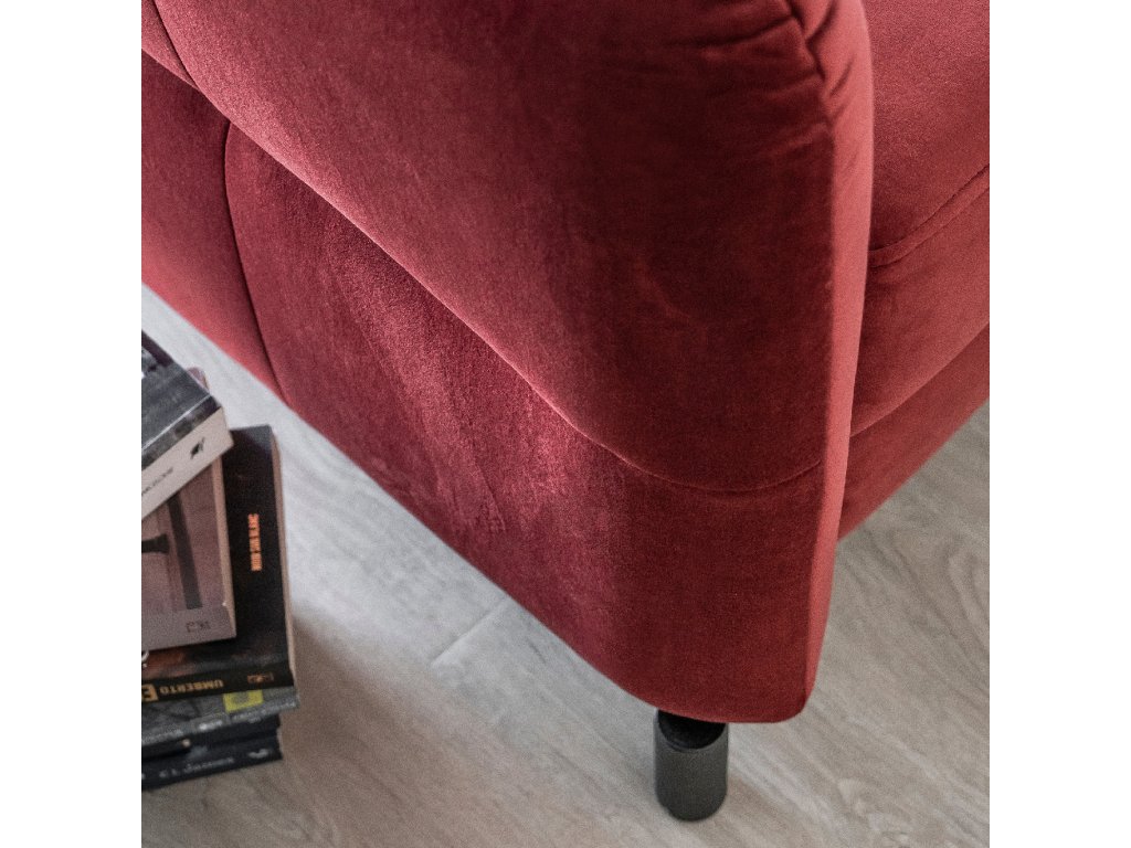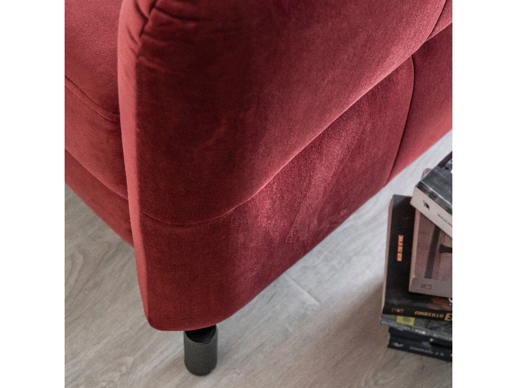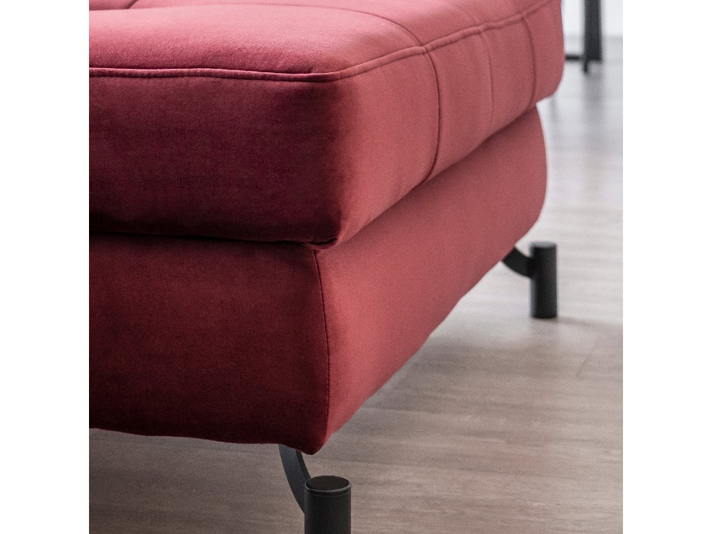 Elegantní černé kovové nohy nepravidelného tvaru dodávají sedačce lehkost a moderní charakter.