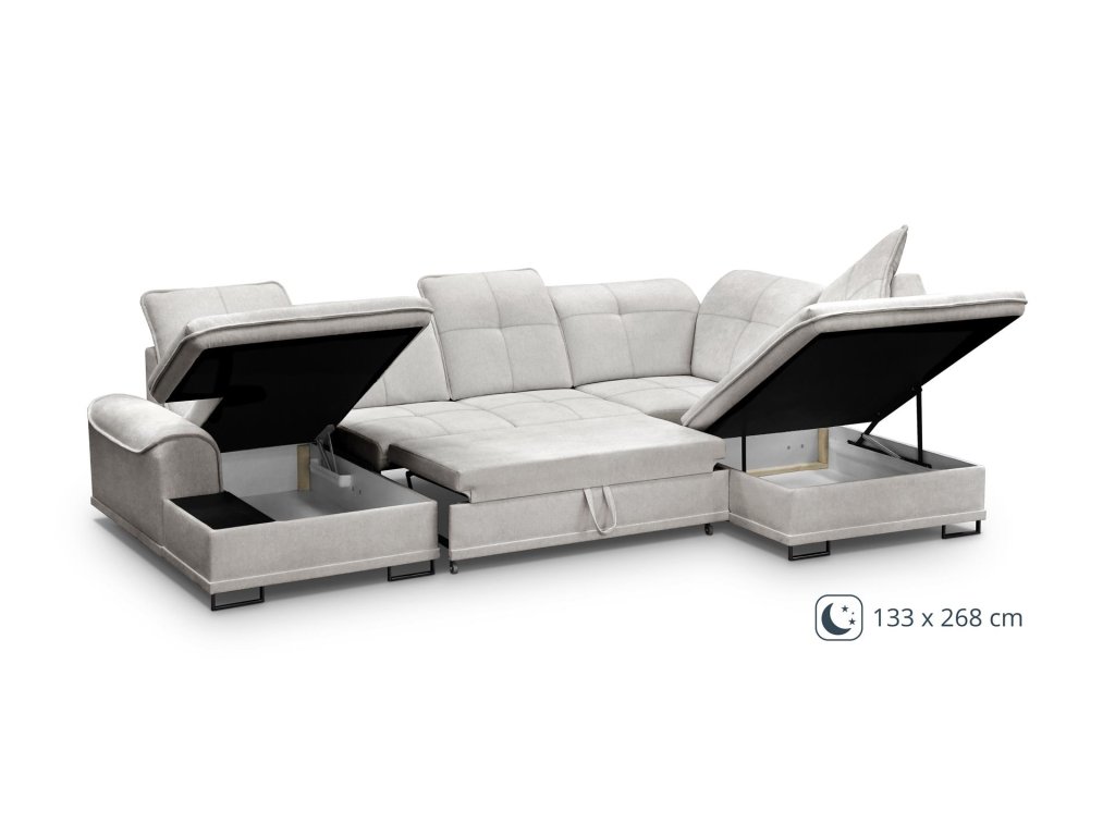 Souprava je vybavena rozkládacím systémem DELFÍN, díky kterému jednoduše vytvoříte prostorné lůžko o rozměru 133 × 268 cm. Praktické dva úložné prostory nabízí dostatek místa pro lůžkoviny či deky.