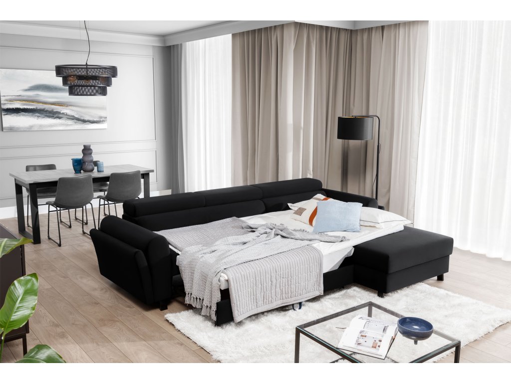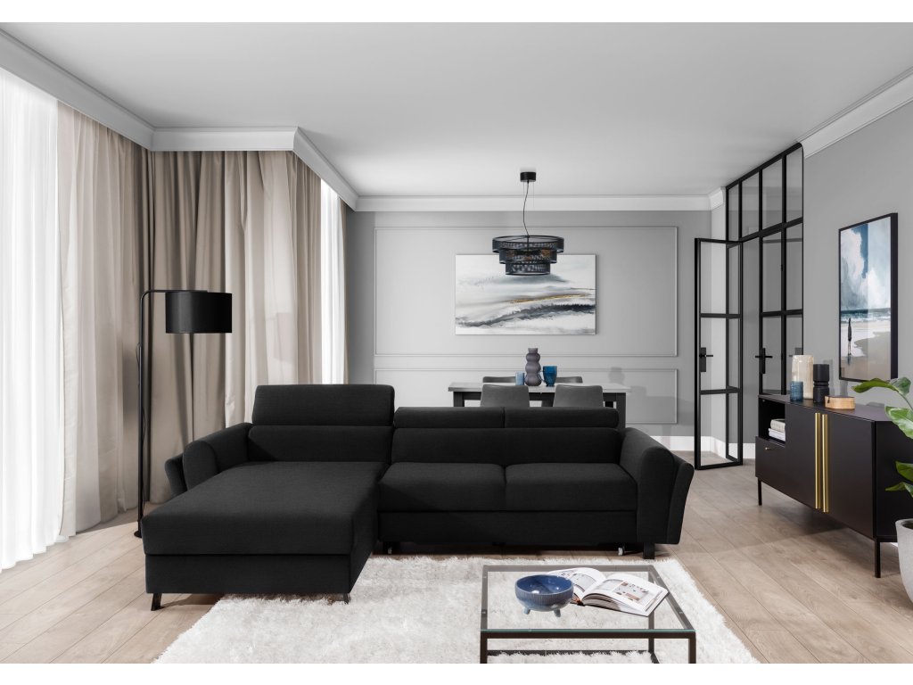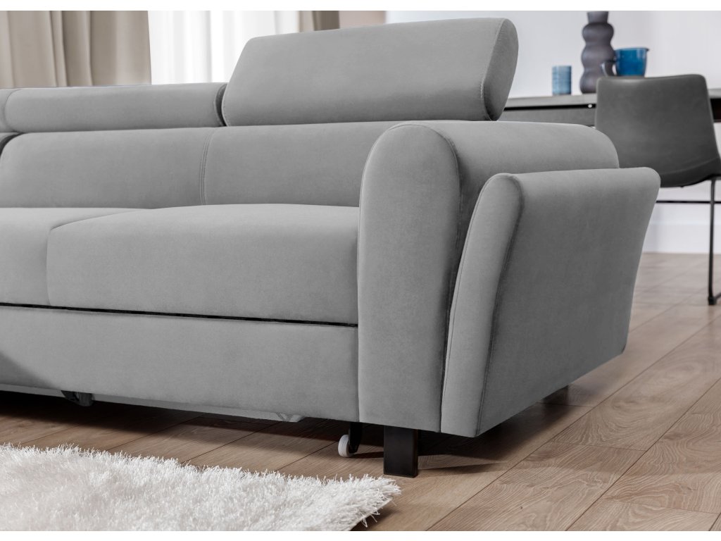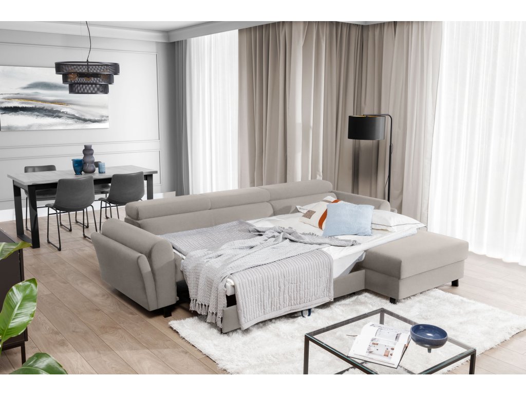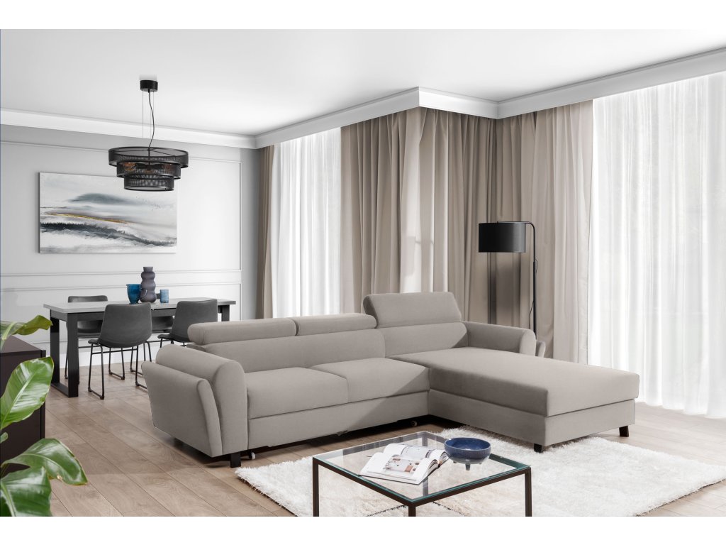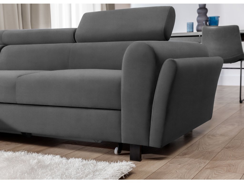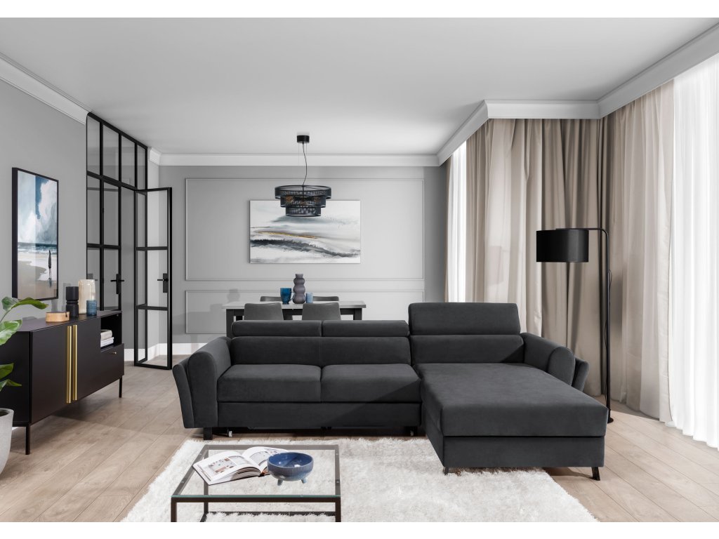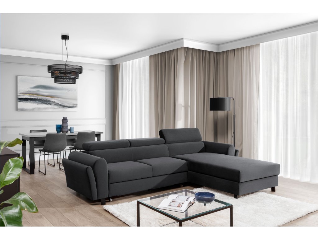 Mariall je klasická, zároveň pohodlná a elegantní rohová sedací souprava ve tvaru písmene L o rozměrech 300 x 190 x 98 cm. Mezi její charakteristické rysy patří: nastavitelné opěrky hlavy, čalouněná zadní část pohovky, elegantní kovové nožky s dřevěnými detaily a hluboký, měkký sedák vyrobený z inovativní pěny T30 a HR, která je odolná vůči deformacím a poškození. Tyto materiály zajišťují maximální komfort jak během denního odpočinku, tak i při spánku. Díky rozkládací funkci je Mariall multifunkčním kusem nábytku. Po rozložení pohovky pomocí intuitivního a jednoduchého mechanismu typu delfín získáme prostorné lůžko o rozměrech 110 x 240 cm a hluboký úložný prostor na ložní prádlo umístěný v otomanu. Pokud hledáte funkční a zároveň klasický a elegantní nábytek – volba může být jen jedna – s čistým svědomím doporučujeme rohovou soupravu Mariall, která je odpovědí na všechny otázky.Doplňkové parametry