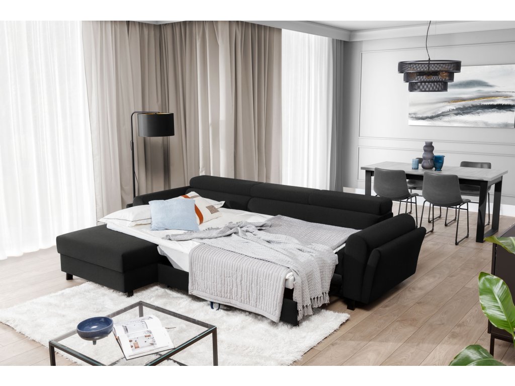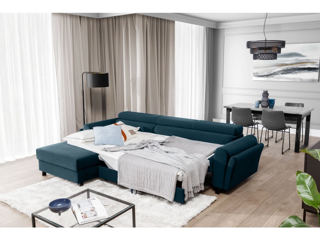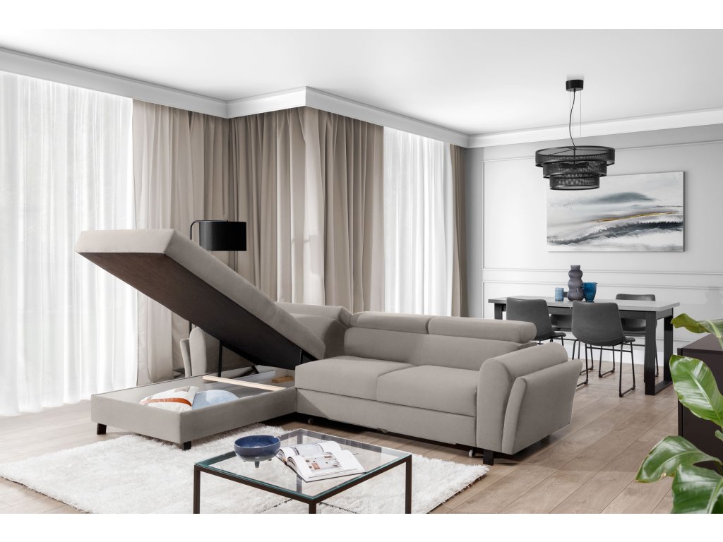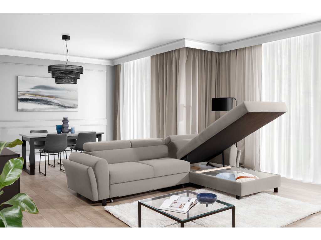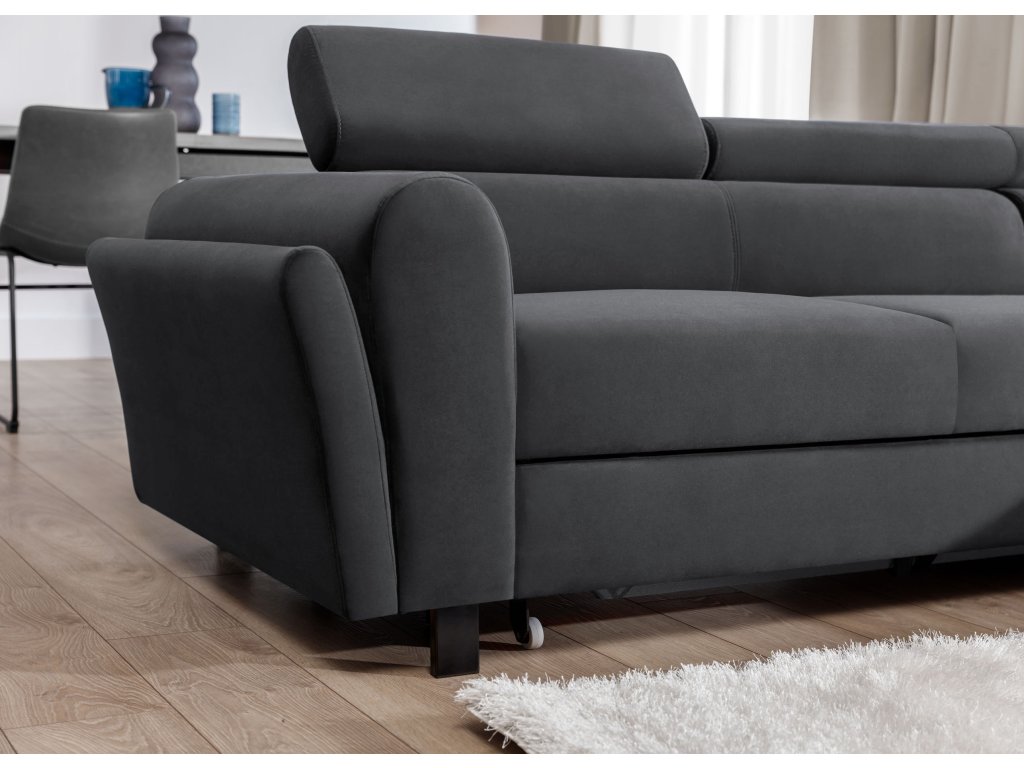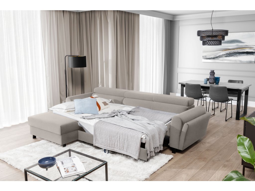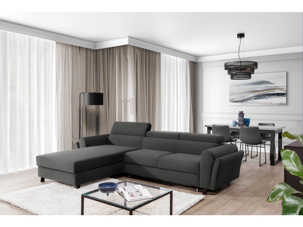 Mariall je klasická, zároveň pohodlná a elegantní rohová sedací souprava ve tvaru písmene L o rozměrech 300 x 190 x 98 cm. Mezi její charakteristické rysy patří: nastavitelné opěrky hlavy, čalouněná zadní část pohovky, elegantní kovové nožky s dřevěnými detaily a hluboký, měkký sedák vyrobený z inovativní pěny T30 a HR, která je odolná vůči deformacím a poškození. Tyto materiály zajišťují maximální komfort jak během denního odpočinku, tak i při spánku. Díky rozkládací funkci je Mariall multifunkčním kusem nábytku. Po rozložení pohovky pomocí intuitivního a jednoduchého mechanismu typu delfín získáme prostorné lůžko o rozměrech 110 x 240 cm a hluboký úložný prostor na ložní prádlo umístěný v otomanu. Pokud hledáte funkční a zároveň klasický a elegantní nábytek – volba může být jen jedna – s čistým svědomím doporučujeme rohovou soupravu Mariall, která je odpovědí na všechny otázky.Doplňkové parametry