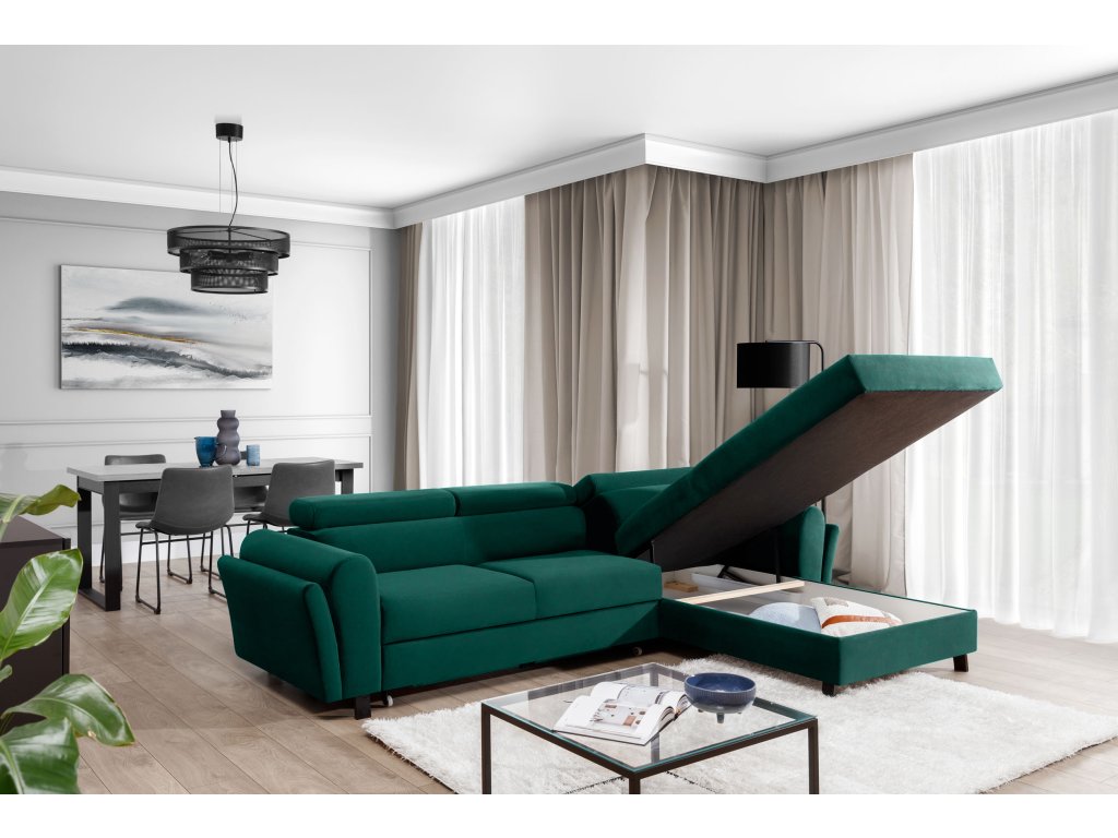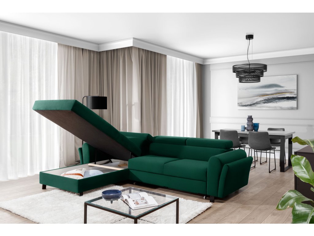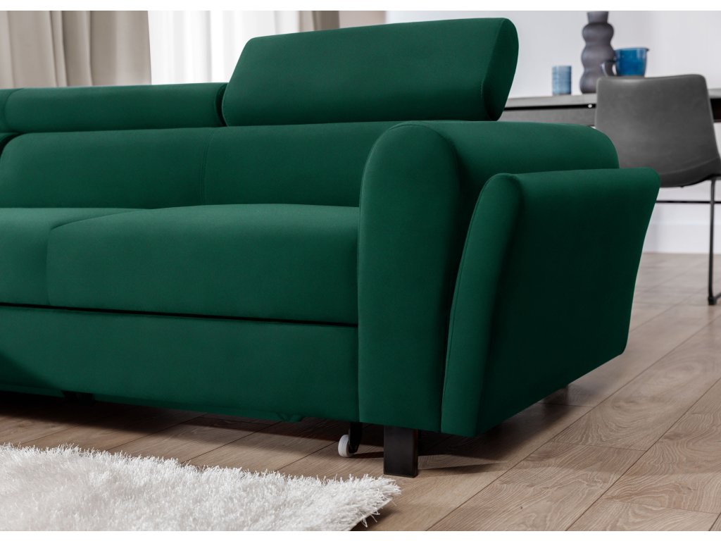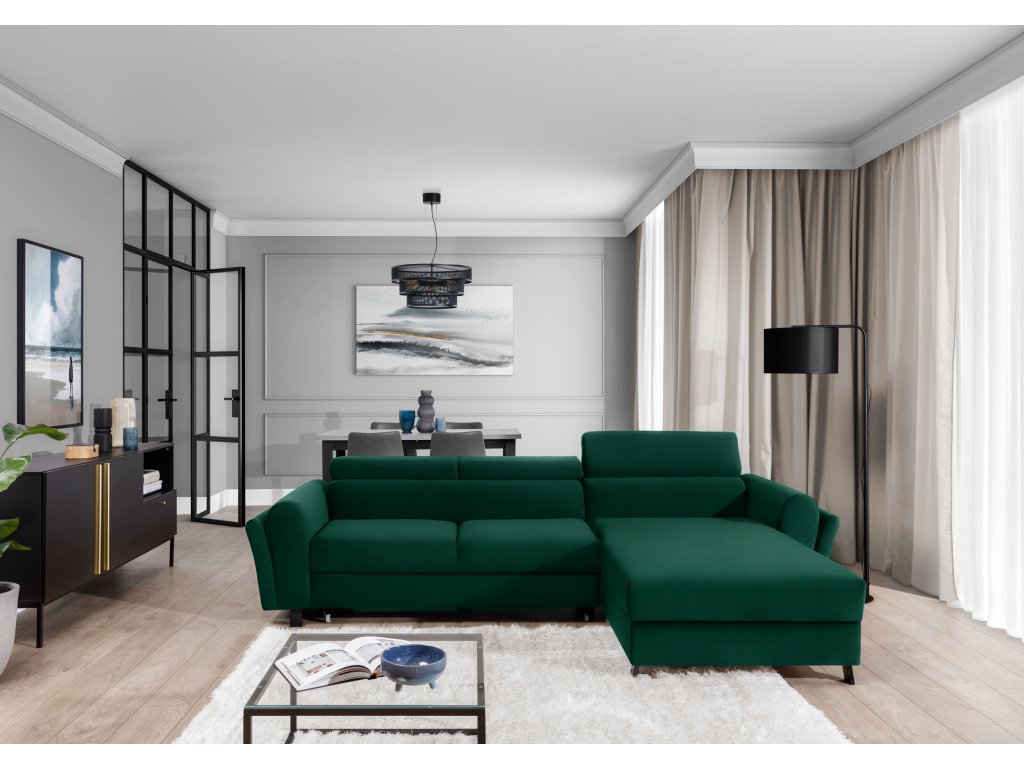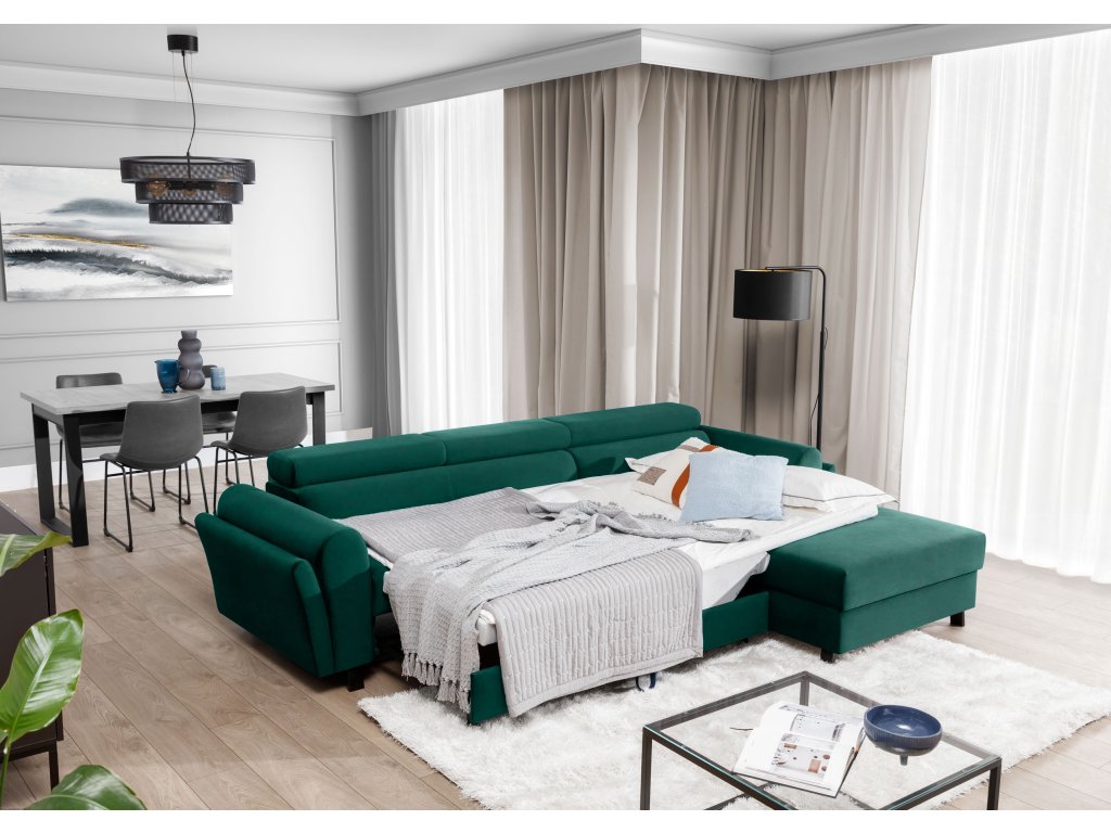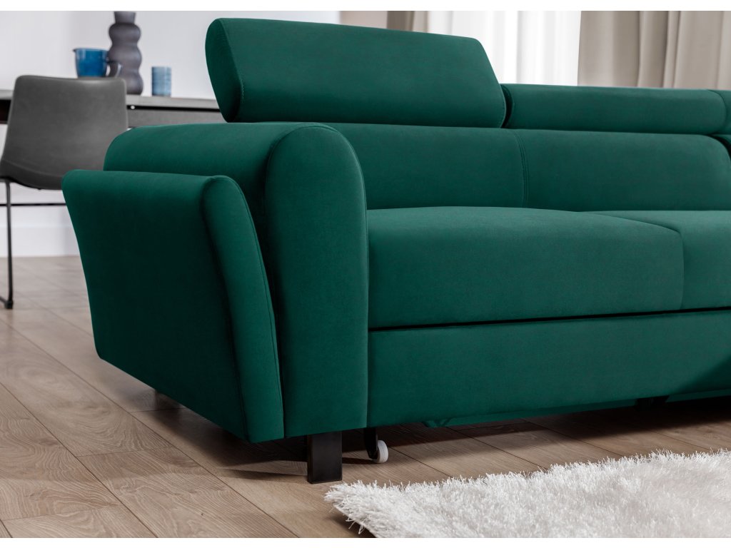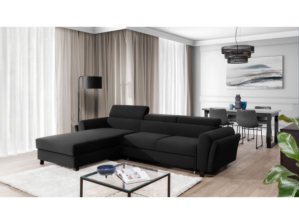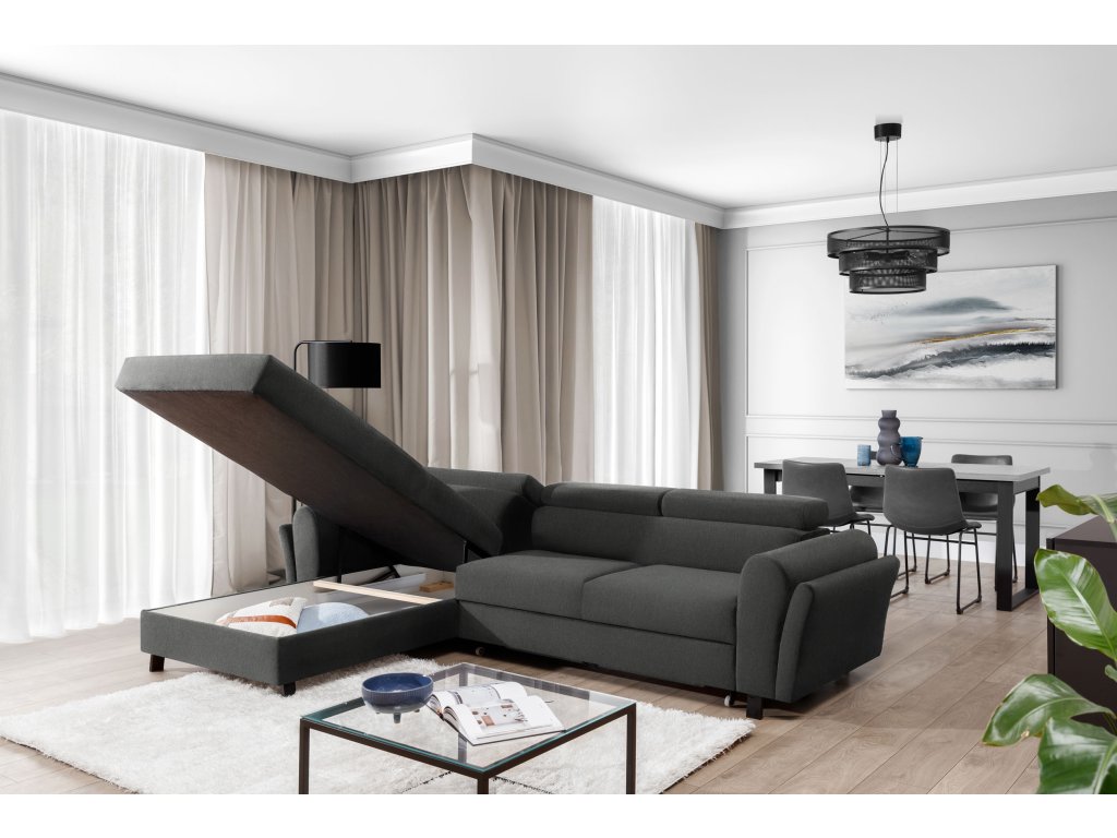 Mariall je klasická, zároveň pohodlná a elegantní rohová sedací souprava ve tvaru písmene L o rozměrech 300 x 190 x 98 cm. Mezi její charakteristické rysy patří: nastavitelné opěrky hlavy, čalouněná zadní část pohovky, elegantní kovové nožky s dřevěnými detaily a hluboký, měkký sedák vyrobený z inovativní pěny T30 a HR, která je odolná vůči deformacím a poškození. Tyto materiály zajišťují maximální komfort jak během denního odpočinku, tak i při spánku. Díky rozkládací funkci je Mariall multifunkčním kusem nábytku. Po rozložení pohovky pomocí intuitivního a jednoduchého mechanismu typu delfín získáme prostorné lůžko o rozměrech 110 x 240 cm a hluboký úložný prostor na ložní prádlo umístěný v otomanu. Pokud hledáte funkční a zároveň klasický a elegantní nábytek – volba může být jen jedna – s čistým svědomím doporučujeme rohovou soupravu Mariall, která je odpovědí na všechny otázky.Doplňkové parametry