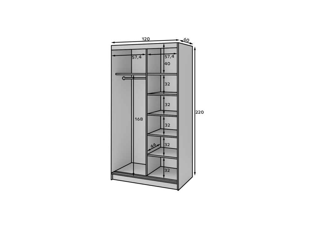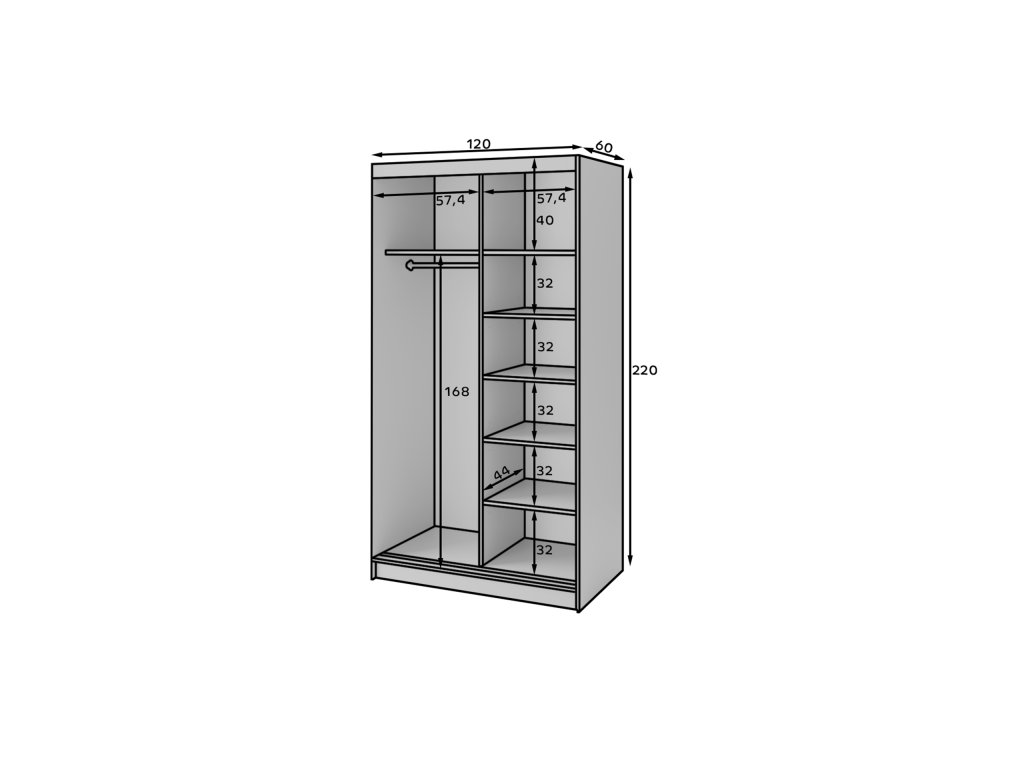Skříň je vyrobena z odolné MDF desky o tloušťce 16 mm, která zajišťuje pevnost a dlouhou životnost. ABS hrany přispívají nejen k odolnosti, ale také k estetickému, čistému zakončení. Šest polic s nosností 10 kg poskytuje dostatek prostoru pro ukládání různých předmětů. Součástí jsou také věšákové tyče, které umožňují praktické zavěšení oblečení a udržení přehledného pořádku.