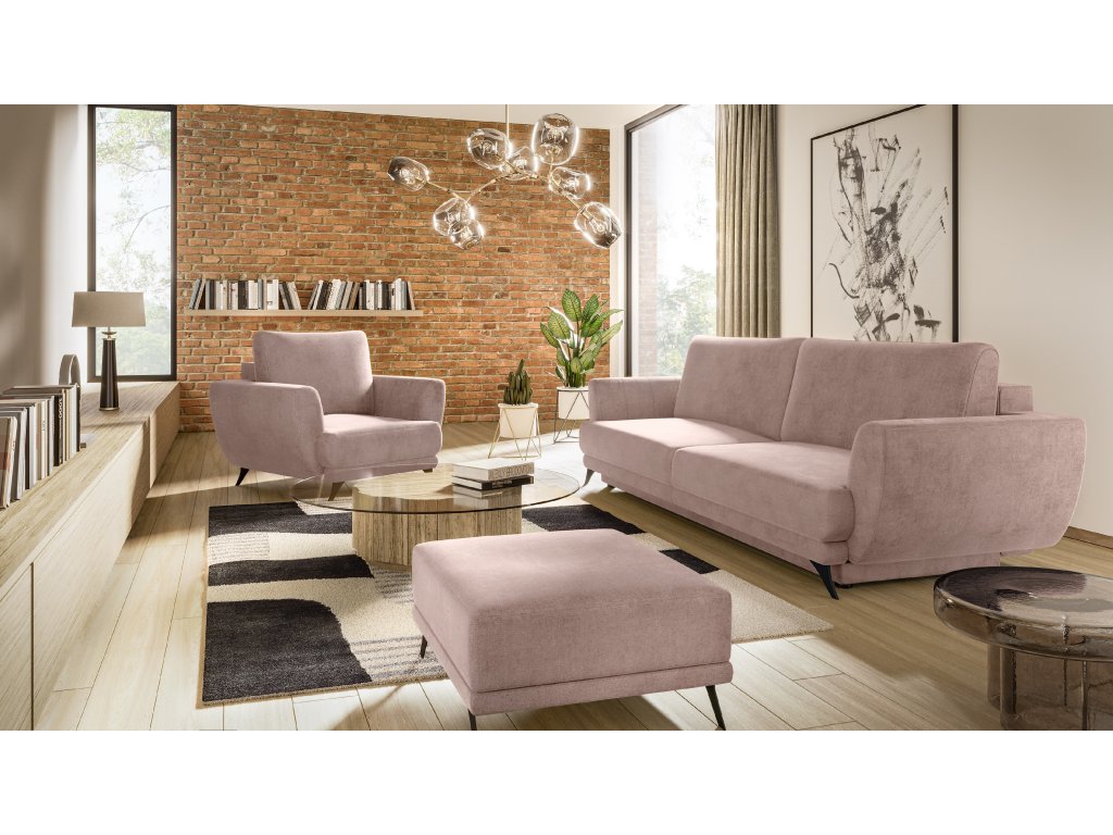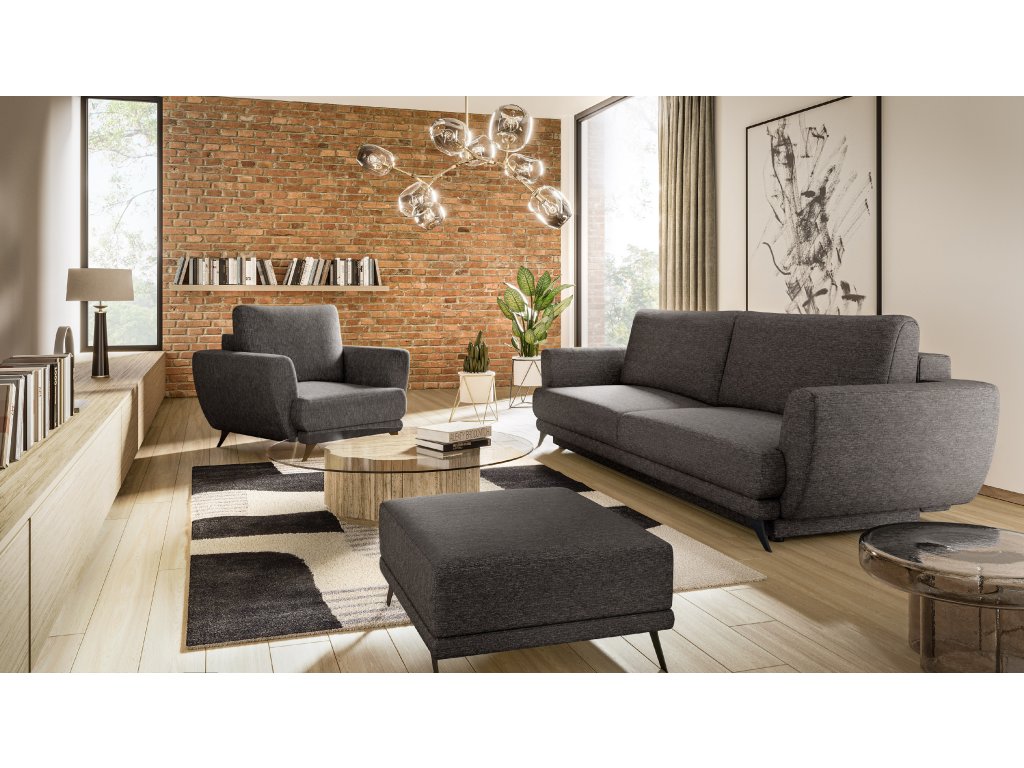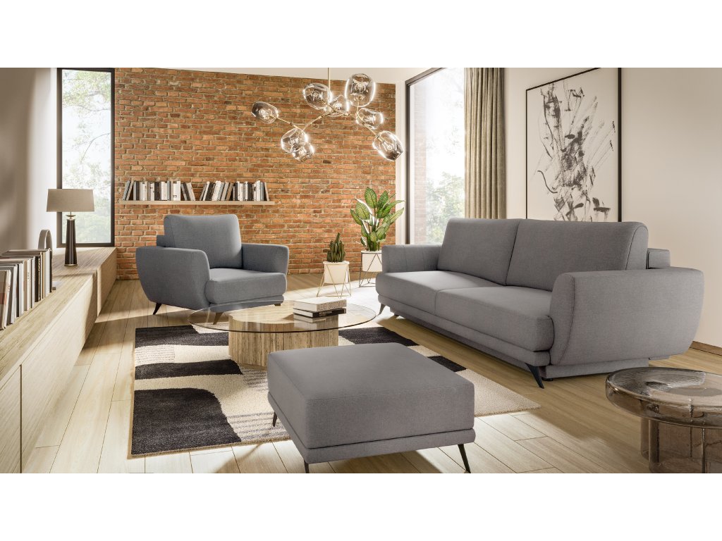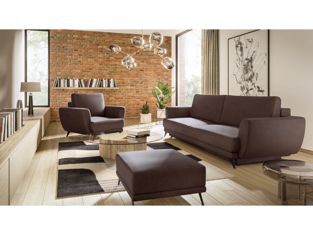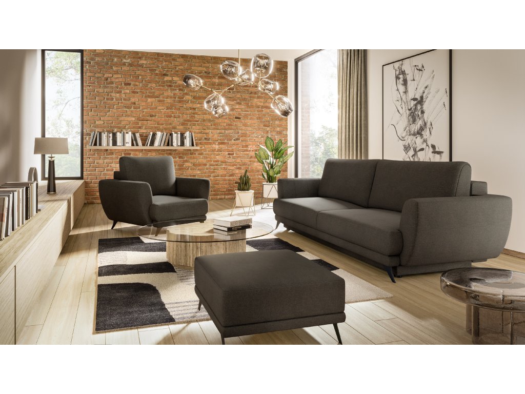 Design celé kolekce se nese v duchu moderní jednoduchosti – charakterizují ji vysoké područky netradičního tvaru, jemné prošívání a vyvážené proporce, které dodávají interiéru harmonii.