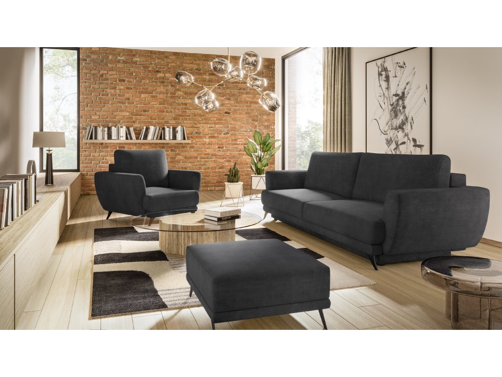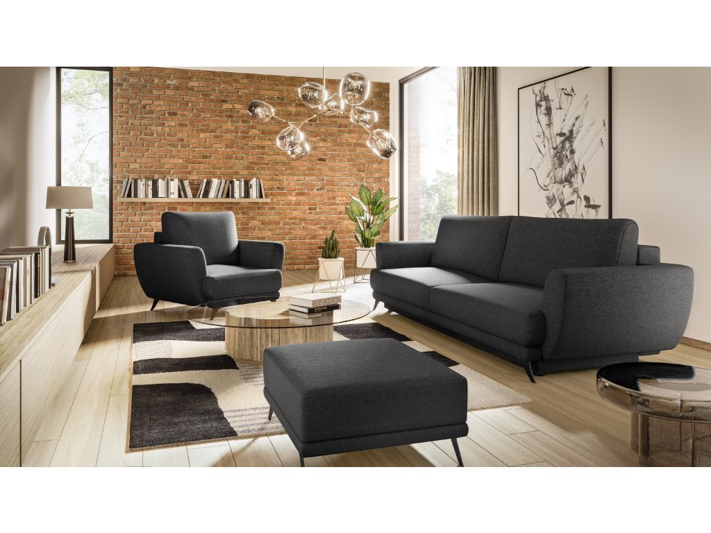 Každý prvek sady Megis byl navržen s důrazem na maximální komfort. Sedáky jsou vyplněny vysoce elastickou HR pěnou a doplněny vlnitými pružinami, které zaručují měkkost, tvarovou stálost a dlouhou životnost. Celá konstrukce stojí na černých ocelových nožkách o výšce 13 cm, které působí elegantně a zároveň umožňují snadný úklid pod nábytkem.
