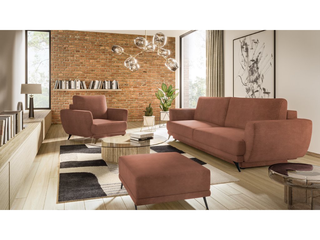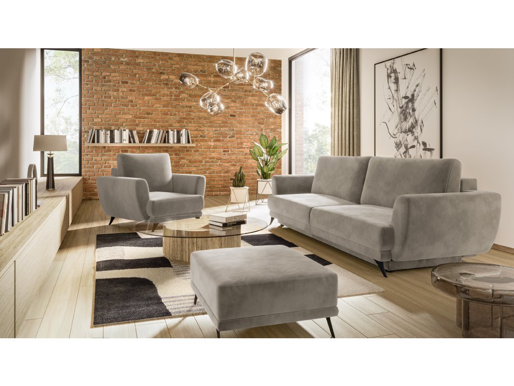 Odpočinkový set Megis představuje dokonalou kombinaci pohodlí, funkčnosti a nadčasového designu. Tato elegantní sestava zahrnuje pohovku (250 × 95 × 90 cm), křeslo (102 × 94 × 87 cm) a taburet (82 × 68 × 42 cm) – ideální volbu pro ty, kteří si potrpí na kvalitu i estetiku.