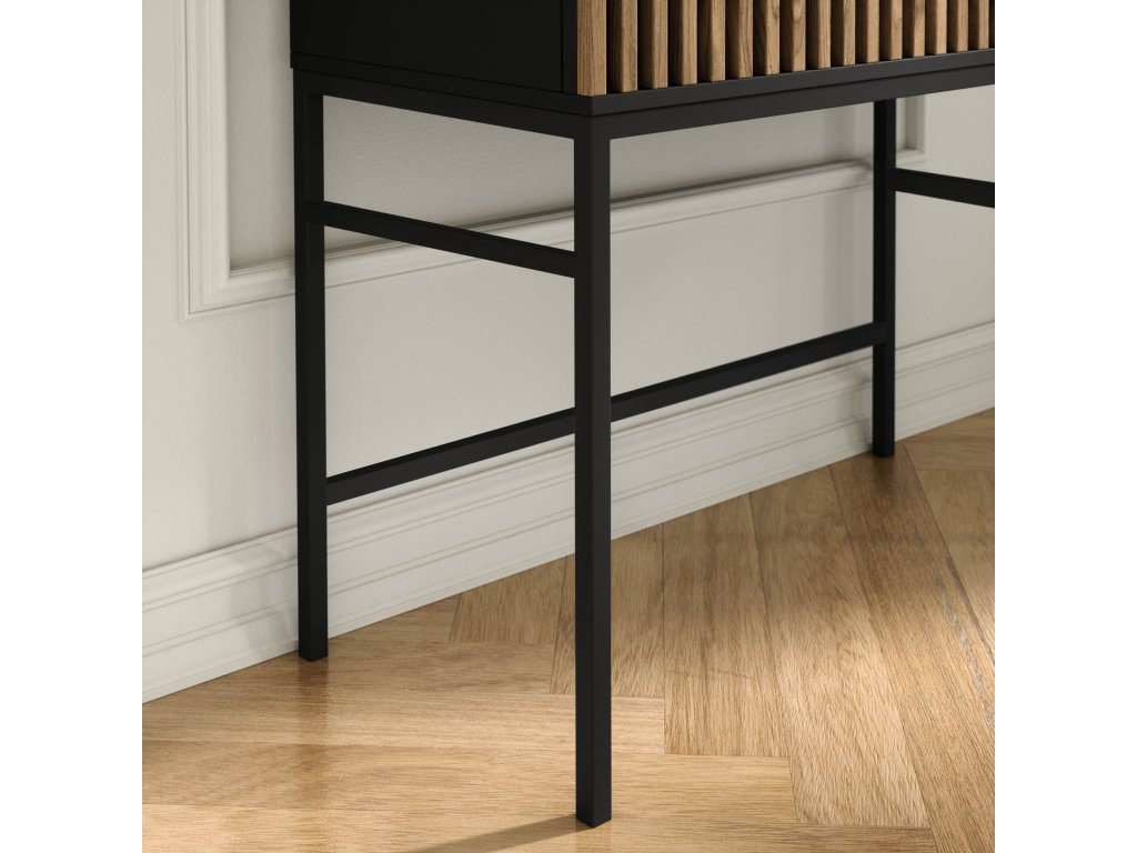 Nohy stolku jsou z černého kovu a mají výšku 20 cm, což nejen podtrhuje moderní design, ale zároveň zajišťuje stabilitu a pohodlný přístup k uloženým věcem.