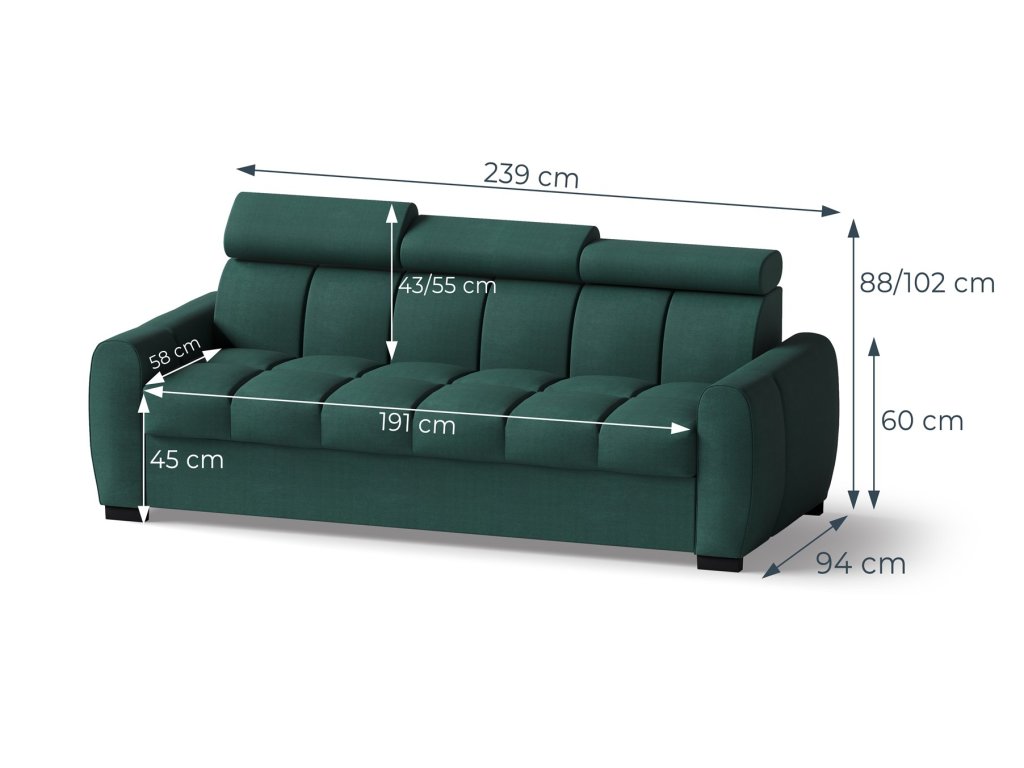 Trojpohovka - Šířka 239 cm, Hloubka 94 cm, Výška 88-102 cm