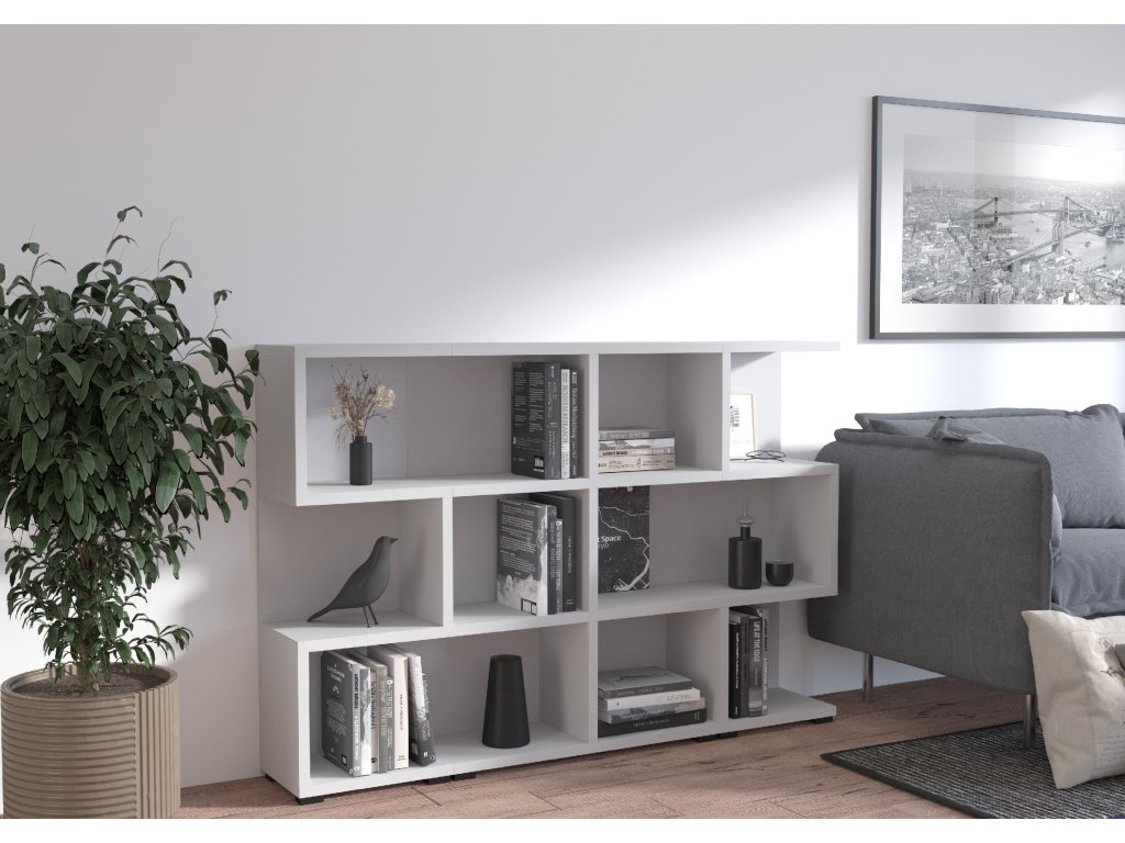 Menší regál se snadno přizpůsobí vašemu interiéru a nabízí praktické možnosti využití i v omezeném prostoru. Můžete jej postavit rovně podél zdi jako kompaktní úložný prvek, použít jej jako nenápadný dělicí prvek pro rozčlenění menších zón, nebo jej umístit do rohu a maximálně využít každý volný kout.