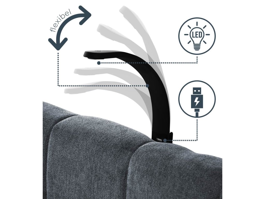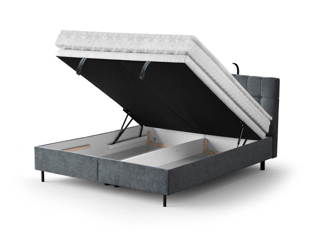 Postel Muna představuje dokonalé spojení moderního designu, komfortu a praktických funkcí. Elegantní čalouněné čelo s dekorativním prošíváním doplňují dvě nastavitelné kovové lampičky s USB dobíjecím portem a napájecím adaptérem (15W TUV) – ideální pro večerní čtení nebo pohodlné nabíjení telefonu.
