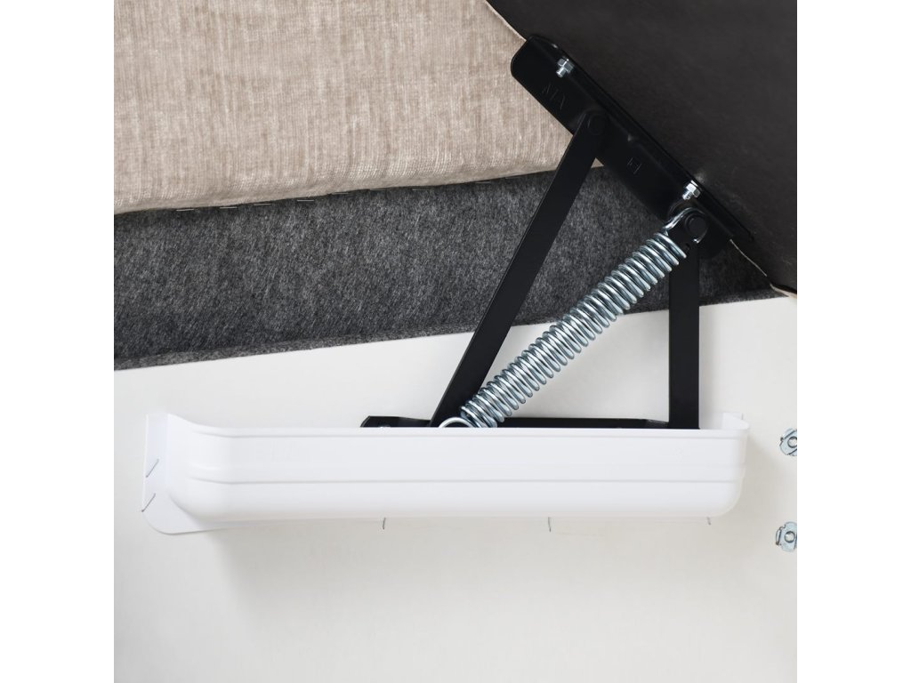 Postel nabízí také dva samostatné úložné prostory, které jsou snadno přístupné a ideální pro uložení ložního prádla, dek a sezónních textilií. Luxusní vzhled dotváří ozdobné prošívání na čele i na přední části postele.
