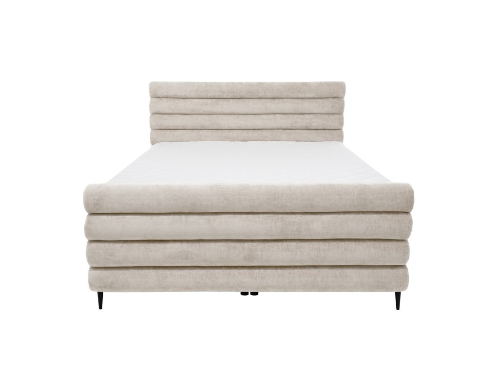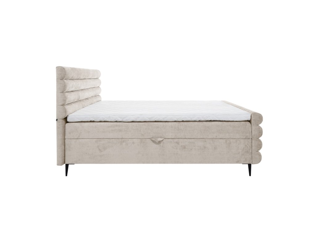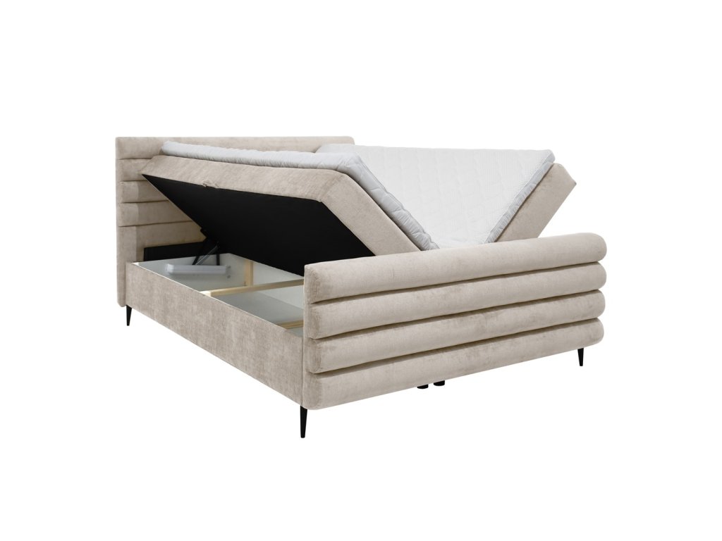 Postel nabízí také dva samostatné úložné prostory, které jsou snadno přístupné a ideální pro uložení ložního prádla, dek a sezónních textilií. Luxusní vzhled dotváří ozdobné prošívání na čele i na přední části postele.