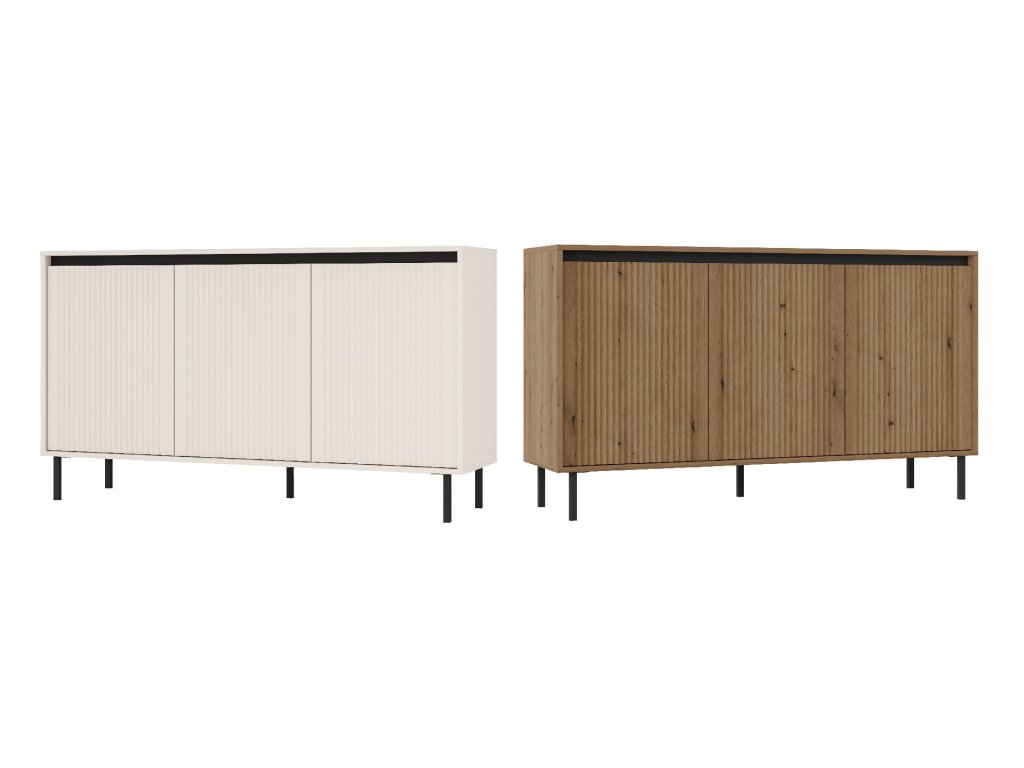 - 3D frézování na čelních plochách z 16mm MDF desky vytváří působivou texturu, která dodává nábytku originalitu a eleganci. Kombinace kvalitního materiálu a precizního opracování činí dvířka výrazným designovým prvkem celé komody.
