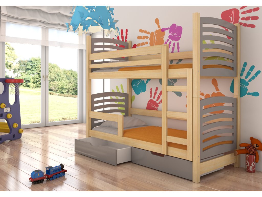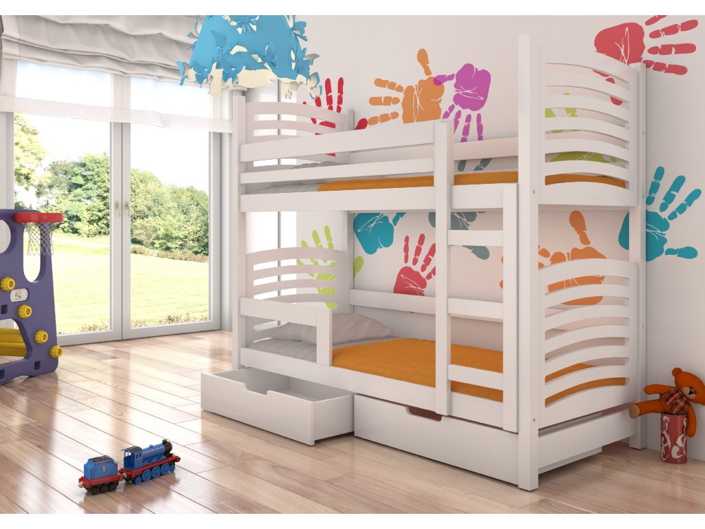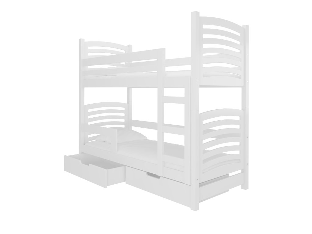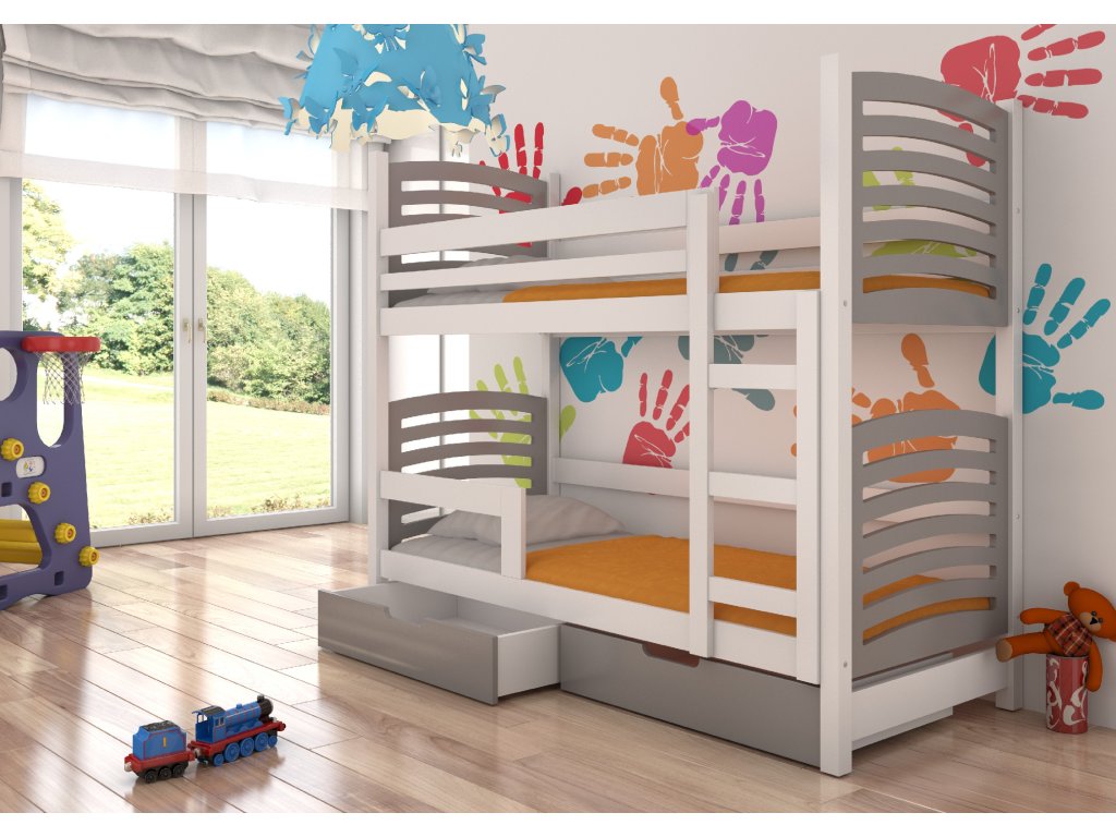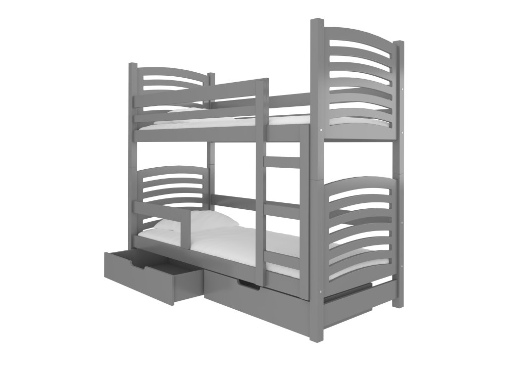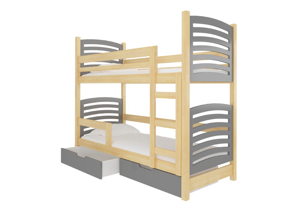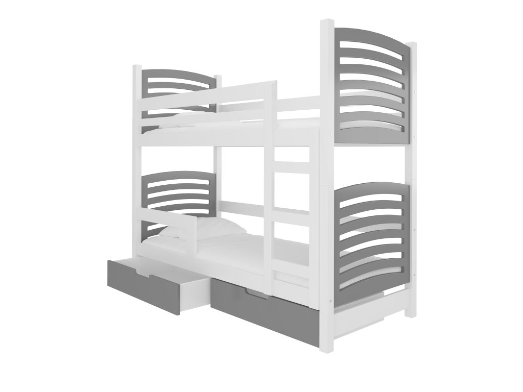 Dvoulůžková patrová postel OSUNA je skvělým nápadem pro úsporu místa v menším dětském pokoji. Nábytek má schodkový žebřík a dvě prostorné a funkční zásuvky na ložní prádlo. Dále jsou na dvou úrovních namontovány ochranné zábrany, které zvyšují bezpečnost během spánku. Společně s postelí obdržíte sadu pěnových matrací s bavlněnými potahy, které lze snadno sundat a vyprat.Doplňkové parametry
