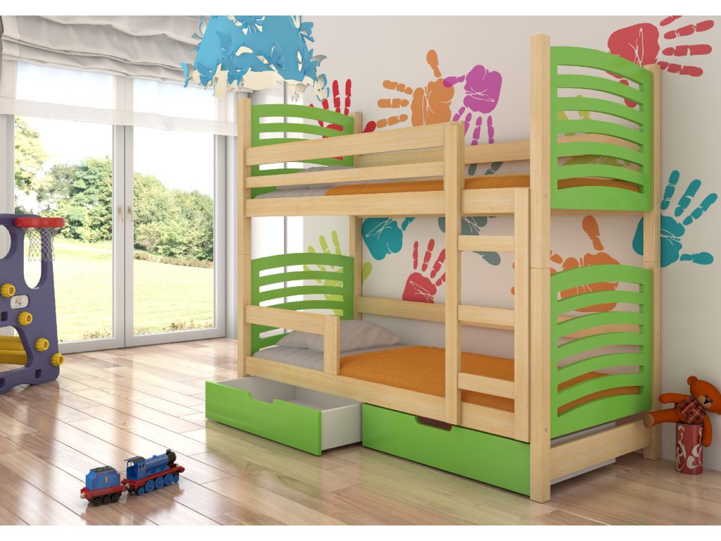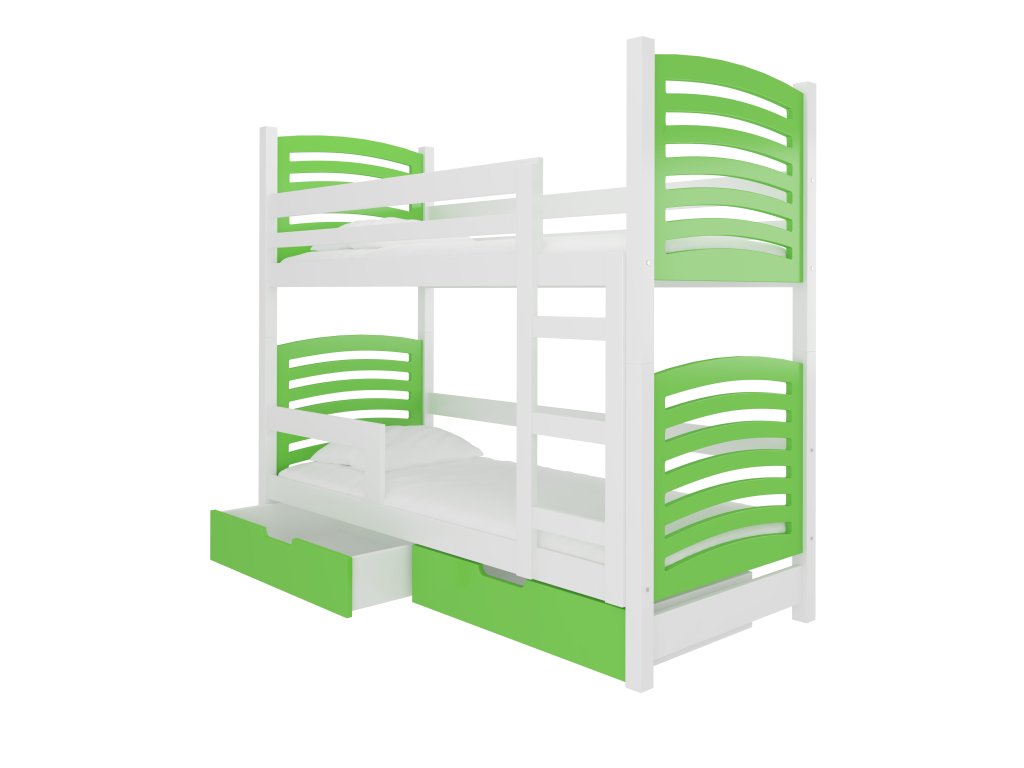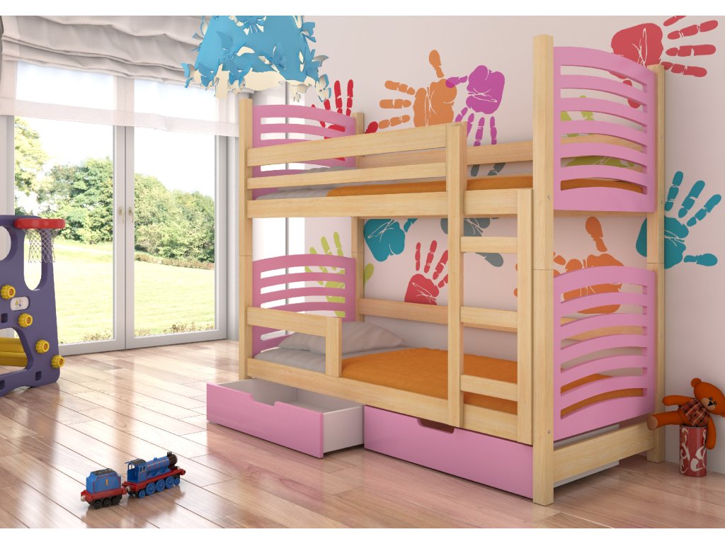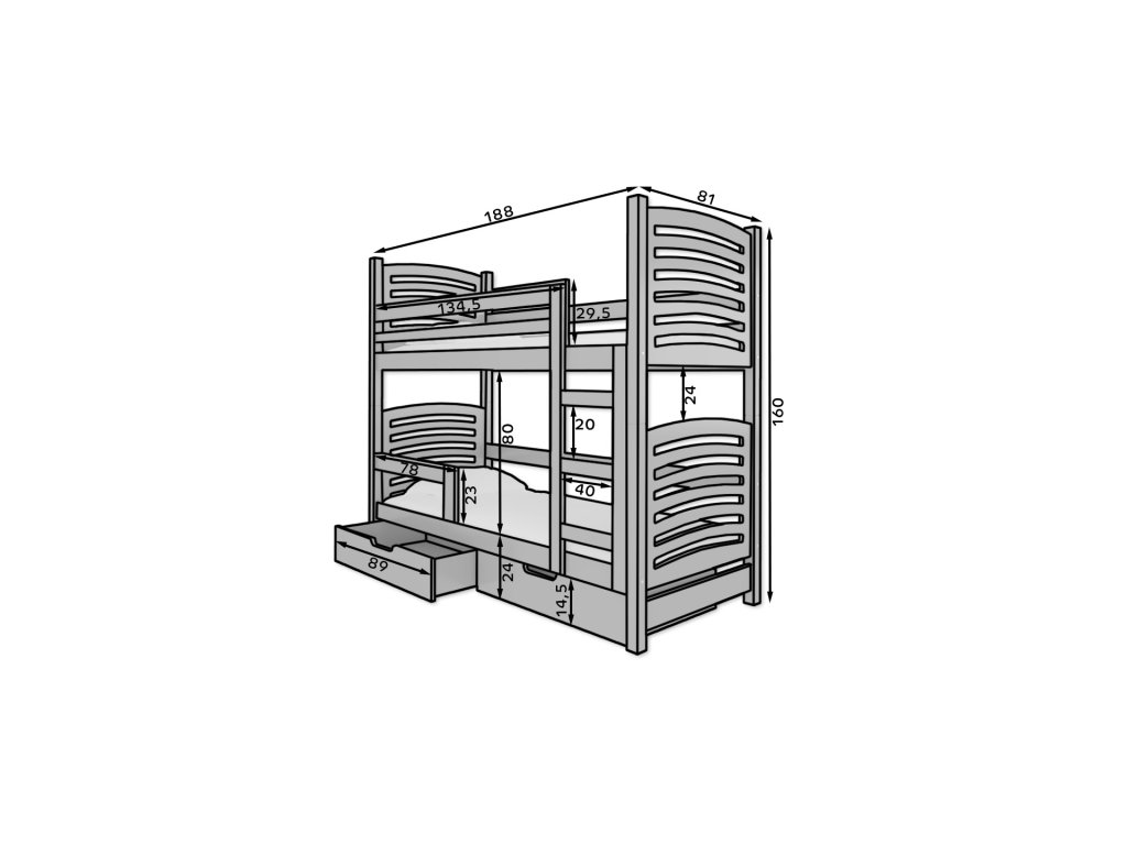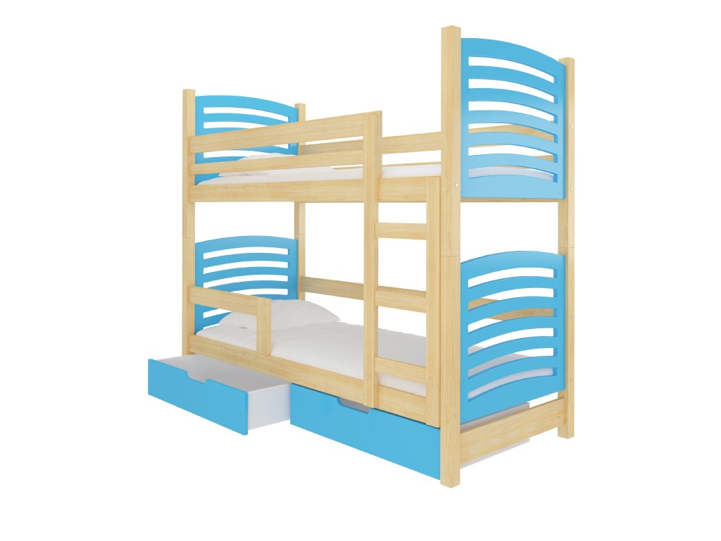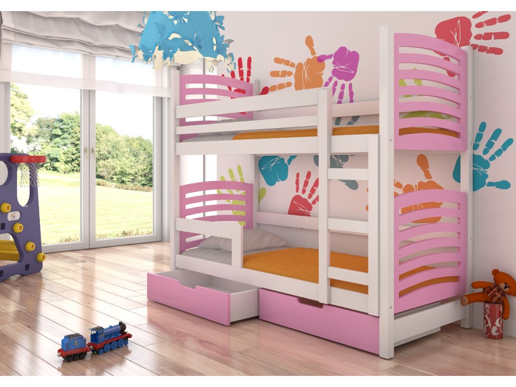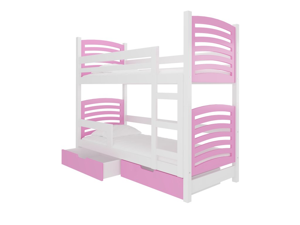 Dvoulůžková patrová postel OSUNA je skvělým nápadem pro úsporu místa v menším dětském pokoji. Nábytek má schodkový žebřík a dvě prostorné a funkční zásuvky na ložní prádlo. Dále jsou na dvou úrovních namontovány ochranné zábrany, které zvyšují bezpečnost během spánku. Společně s postelí obdržíte sadu pěnových matrací s bavlněnými potahy, které lze snadno sundat a vyprat.Doplňkové parametry