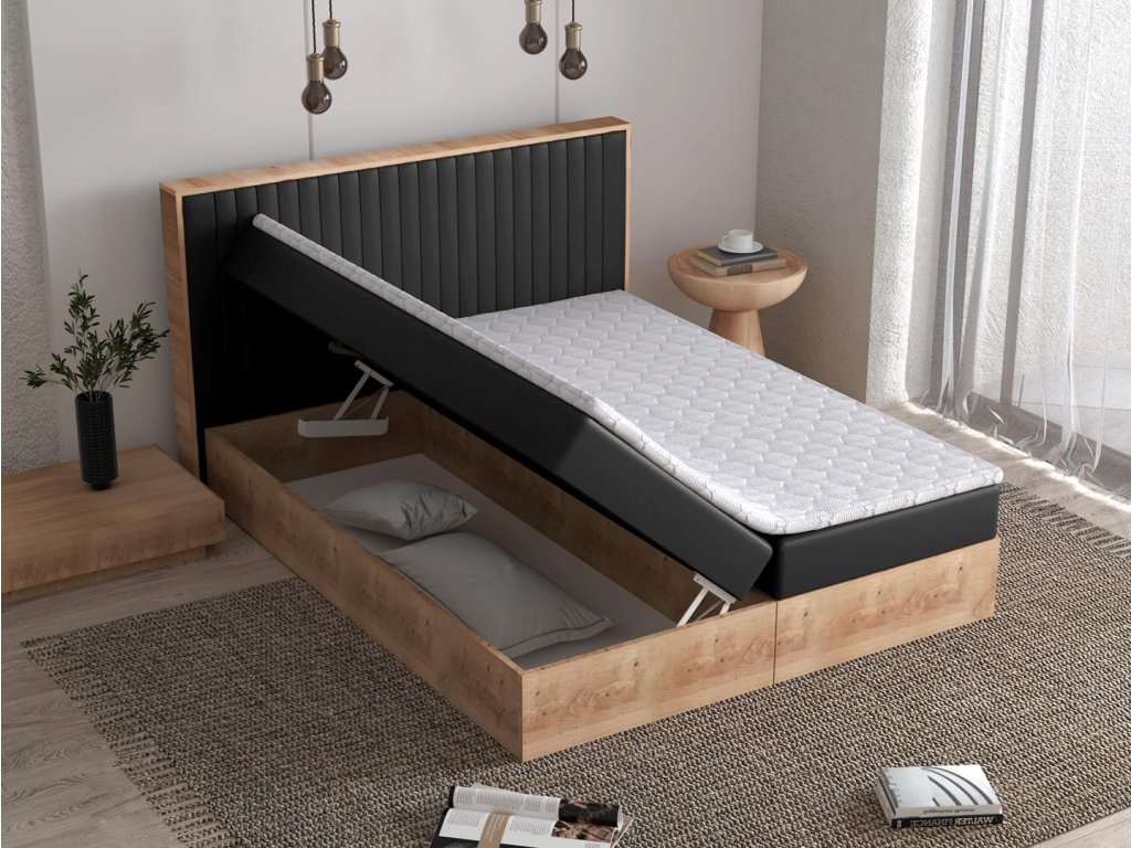 Součástí konstrukce je vestavěná bonelová matrace doplněná o pěnu T25, která zajišťuje rovnoměrnou podporu těla a komfortní spánek. Pro ještě větší pohodlí je k posteli přidán topper zdarma, který zvyšuje měkkost a prodlužuje životnost matrace.