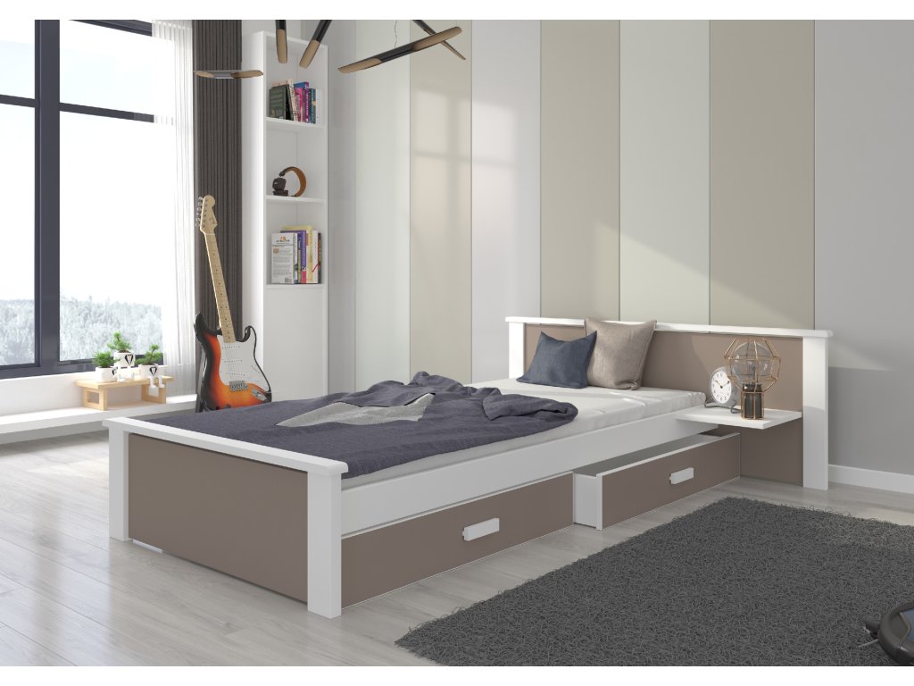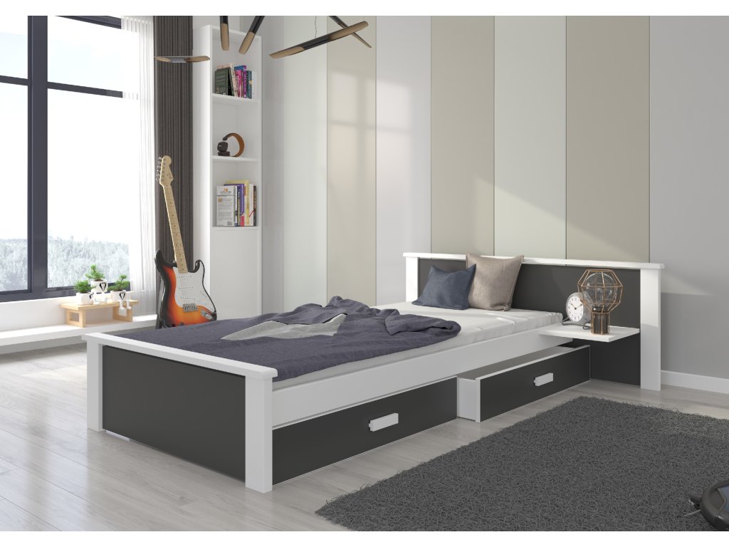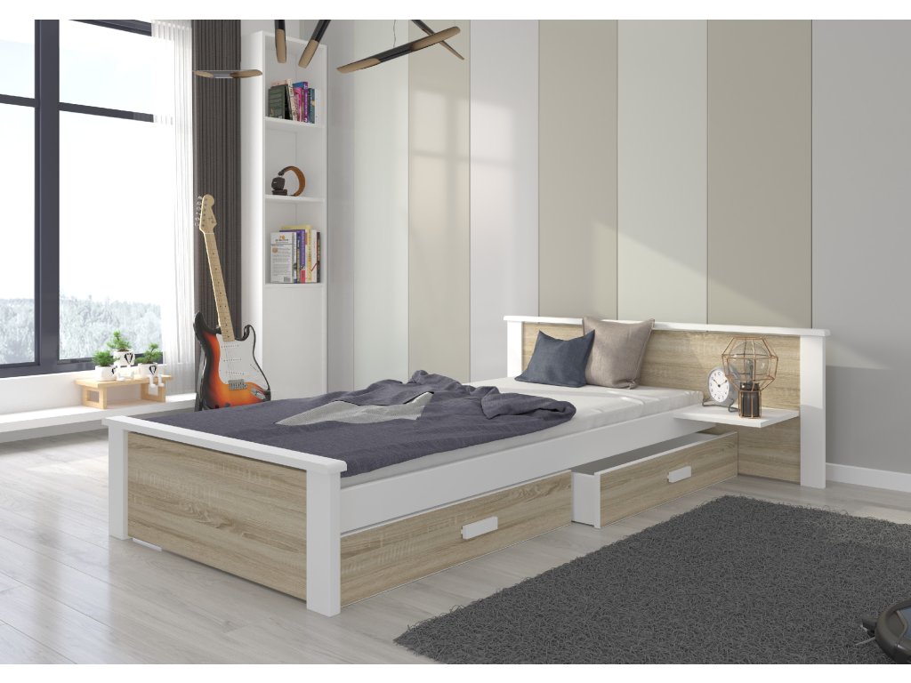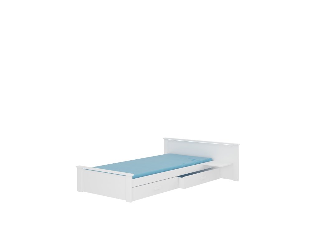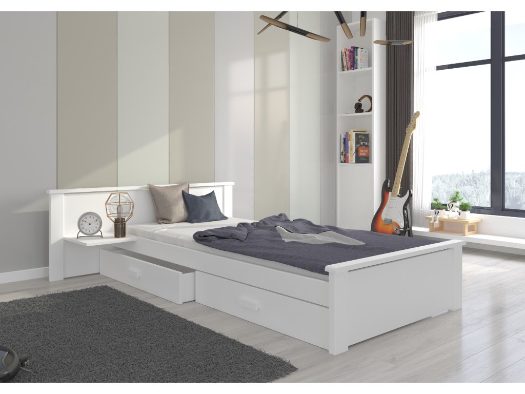 Jednolůžko ALDEX SHELF jednoduchého tvaru se skvěle hodí do interiéru pokoje pro mladé. Tento model je vybaven policí, která je ideálním místem pro noční lampičku nebo oblíbenou knihu. Velkou výhodou jsou dvě prostorné a funkční zásuvky na lůžkoviny. Součástí sestavy je také robustní rám z pevných lamel. Rám postele je potažen třemi vrstvami laku, což jistě zajistí odolnost proti mechanickému poškození a různým druhům nečistot. Matrace není součástí soupravy postele.Doplňkové parametry