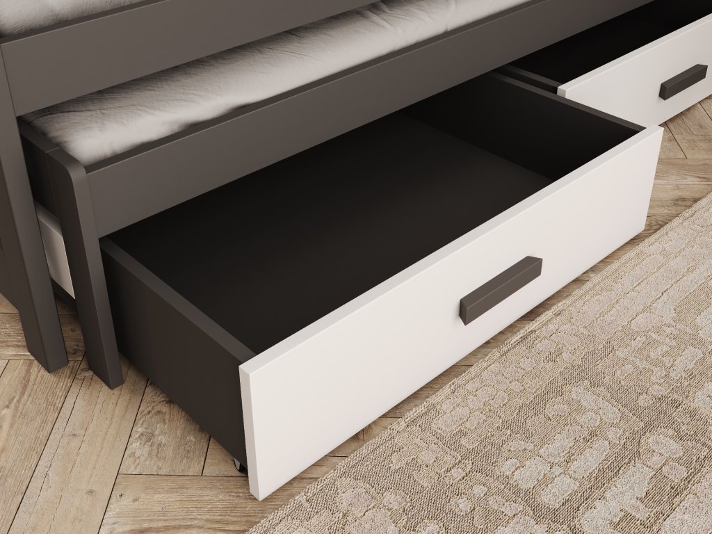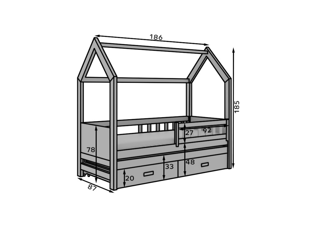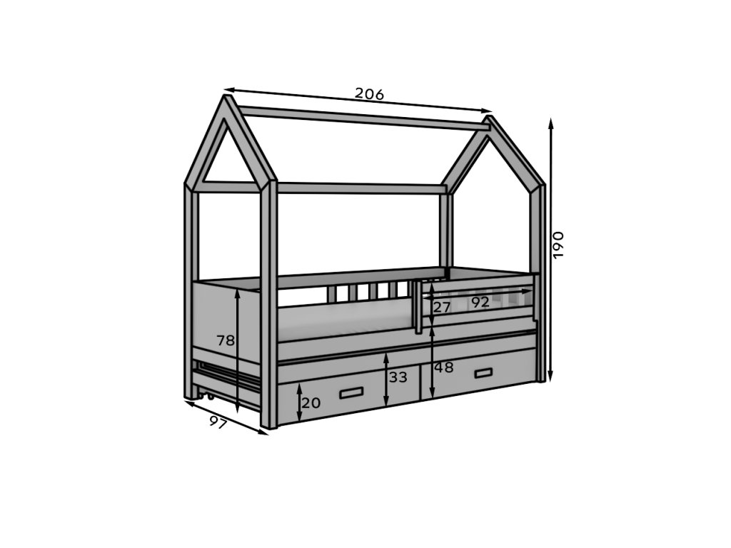 Postel Domek Jaspis je ideálním řešením pro rodiny, které hledají funkčnost spojenou s estetikou. Tento elegantní dvoubarevný nábytek byl navržen s ohledem na maximální využití prostoru a pohodlí každodenního používání. Postel se skládá ze dvou úrovní – hlavního spacího místa a vysouvací části, která skvěle poslouží jako dodatečný prostor na spaní nebo hraní. Další výhodou jsou prostorné zásuvky umístěné pod postelí, které pomohou s uspořádáním ložního prádla, hraček nebo oblečení, čímž zajistí pořádek v dětském pokoji. Pevná konstrukce z bezpečných materiálů a stabilní rám zajišťují pohodlí a bezpečnost. Postel Domek Jaspis je funkční, stylový nábytek, který dokonale zapadne do každého interiéru. Dostupná v různých barevných variantách, umožňuje přizpůsobení se individuálním estetickým preferencím vašeho dítěte! Matrace je součástí balení.Doplňkové parametry