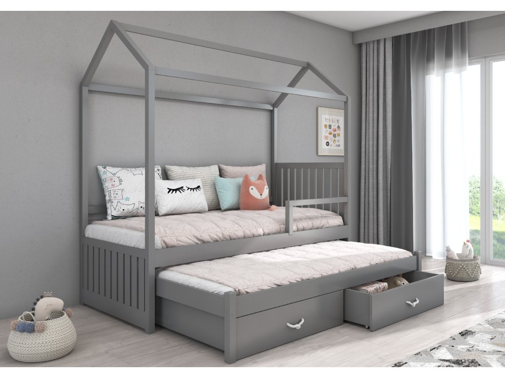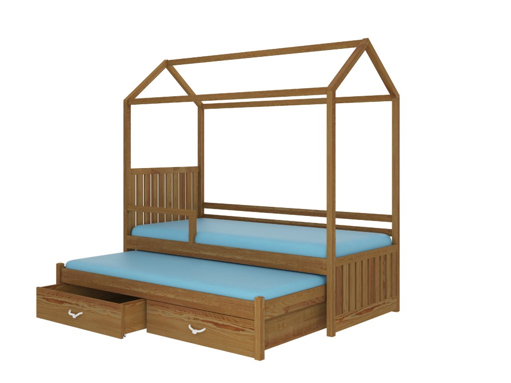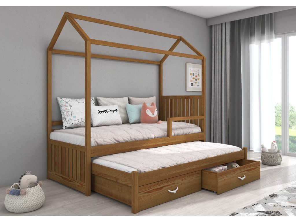 Dětská postel z kolekce JONAS, připomínající svým tvarem domeček, je splněným snem každého dítěte. Skvěle se hodí do pokoje dvou sourozenců i pro případné přespání návštěv.