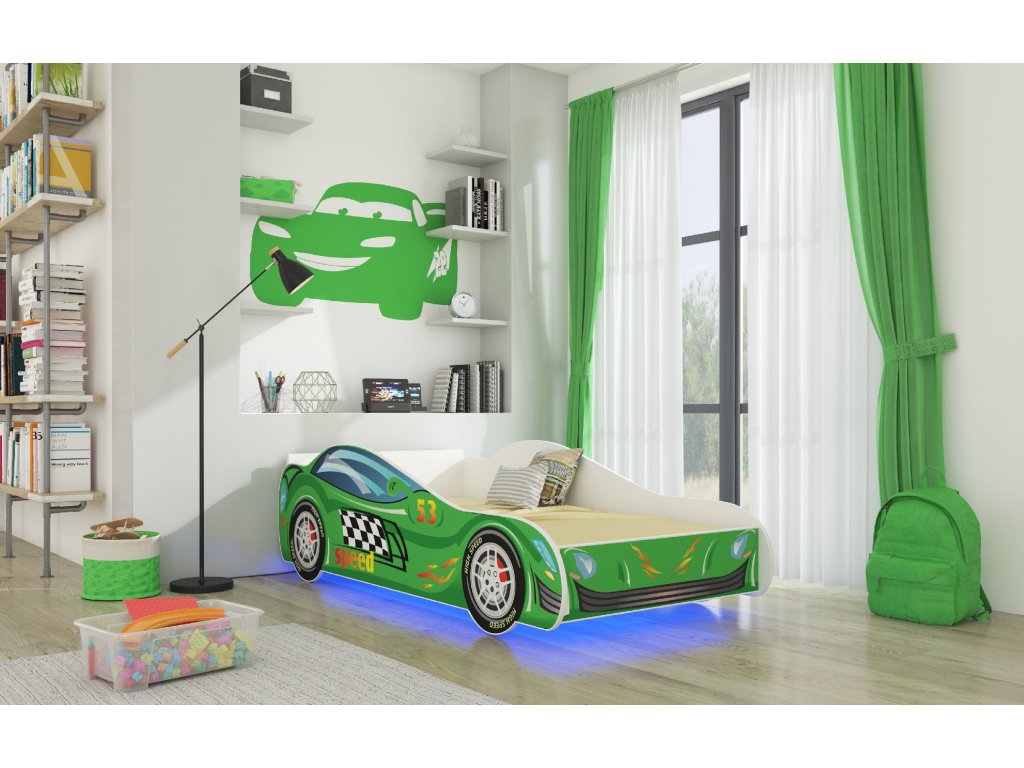 Jednolůžková postel SPEED je ideální volbou pro malé milovníky automobilů a motorismu. Univerzální LED osvětlení určitě oživí interiér a vytvoří jedinečnou atmosféru v pokoji vašeho dítěte. Při výrobě byly použity ekologické vodní barvy, které jsou bezpečné a odolné vůči mechanickému poškození. Navíc postel nemá ostré rohy a grafika je chráněna laminátem.Doplňkové parametry