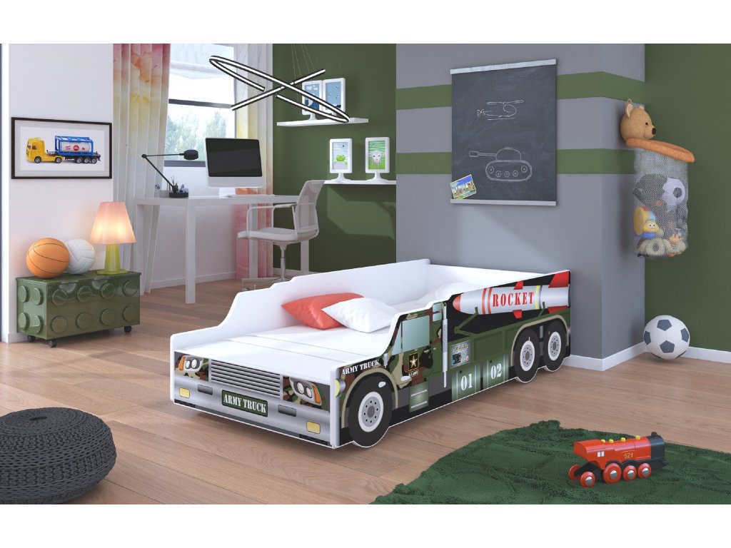 Jednolůžková postel Rocket je ideální volbou pro malé milovníky velkých aut. Při výrobě byly použity ekologické vodou ředitelné barvy, které jsou bezpečné a odolné proti mechanickému poškození. Postel navíc nemá ostré rohy a grafika je chráněna laminátem.Doplňkové parametry