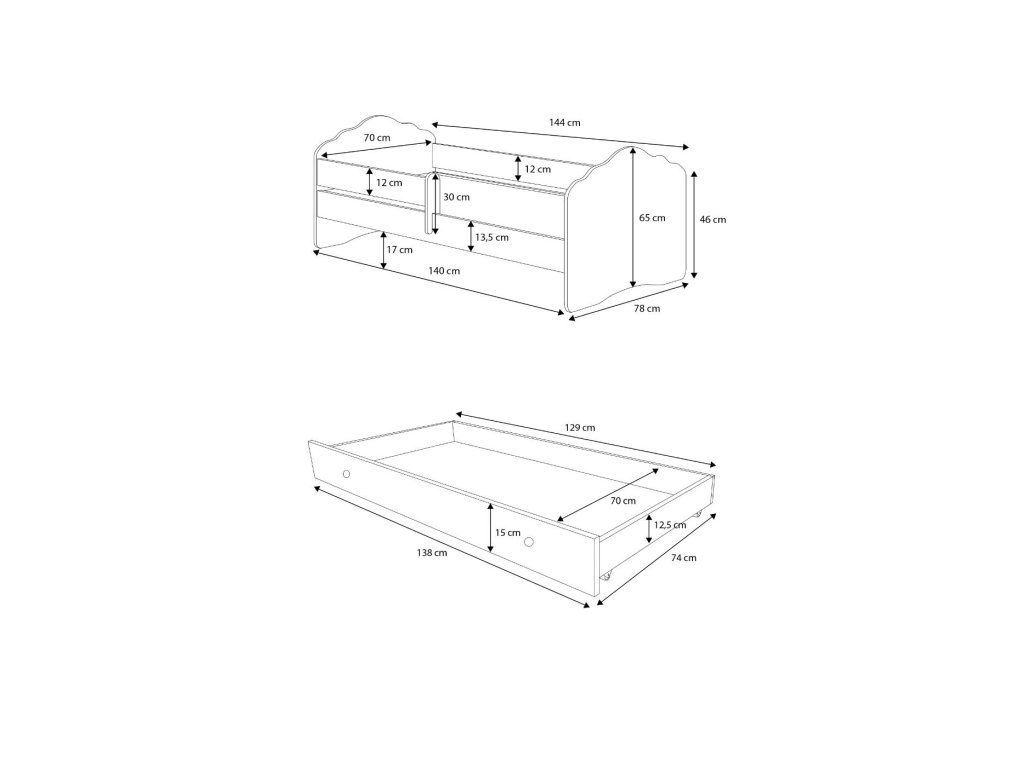 Jednolůžková postel z kolekce CASIMO v jednoduchém designu v matné bílé barvě se skvěle hodí do dětského pokoje. Díky širokému výběru grafik snadno vyberete model, který nejlépe odpovídá zájmům vašeho dítěte. V procesu výroby byly použity ekologické vodou ředitelné barvy, které jsou bezpečné a odolné vůči mechanickému poškození. Postel nemá ostré rohy a grafika je chráněna laminováním. Postel obsahuje praktickou zásuvku na lůžkoviny. Velkou výhodou je ochranná bariéra, která zajišťuje bezpečnost při spánku, a také odnímatelný potah matrace na zip, který lze snadno sundat a vyprat. Pokud potřebujete další místo na spaní, doporučujeme model CASIMO II, který má zásuvku s funkcí spaní.Doplňkové parametry