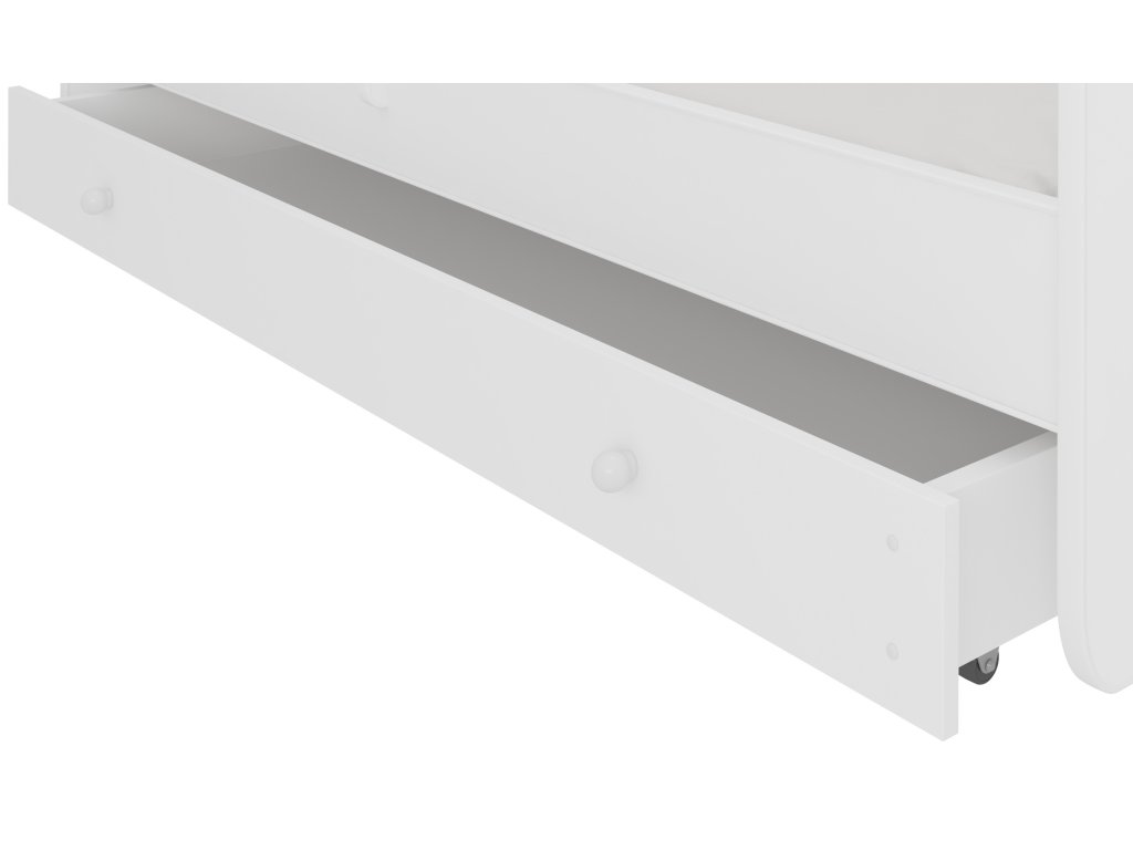 Jednolůžková postel z kolekce PEPE s jednoduchým tvarem v matně bílé barvě se skvěle hodí do dětského pokoje. Díky širokému výběru grafik snadno vyberete model, který nejlépe odpovídá zájmům vašeho dítěte. Při výrobě byly použity ekologické vodou ředitelné barvy, které jsou bezpečné a odolné proti mechanickému poškození. Navíc postel nemá ostré rohy a grafika je chráněna laminátem. Postel obsahuje praktickou zásuvku na lůžkoviny. Velkou výhodou je bezpečnostní zábrana, která zajišťuje bezpečí během spánku, a také snímatelný potah matrace na zip, který lze snadno sundat a vyprat. Pokud potřebujete další místo na spaní, doporučujeme model PEPE II, který má zásuvku s funkcí spaní.Doplňkové parametry