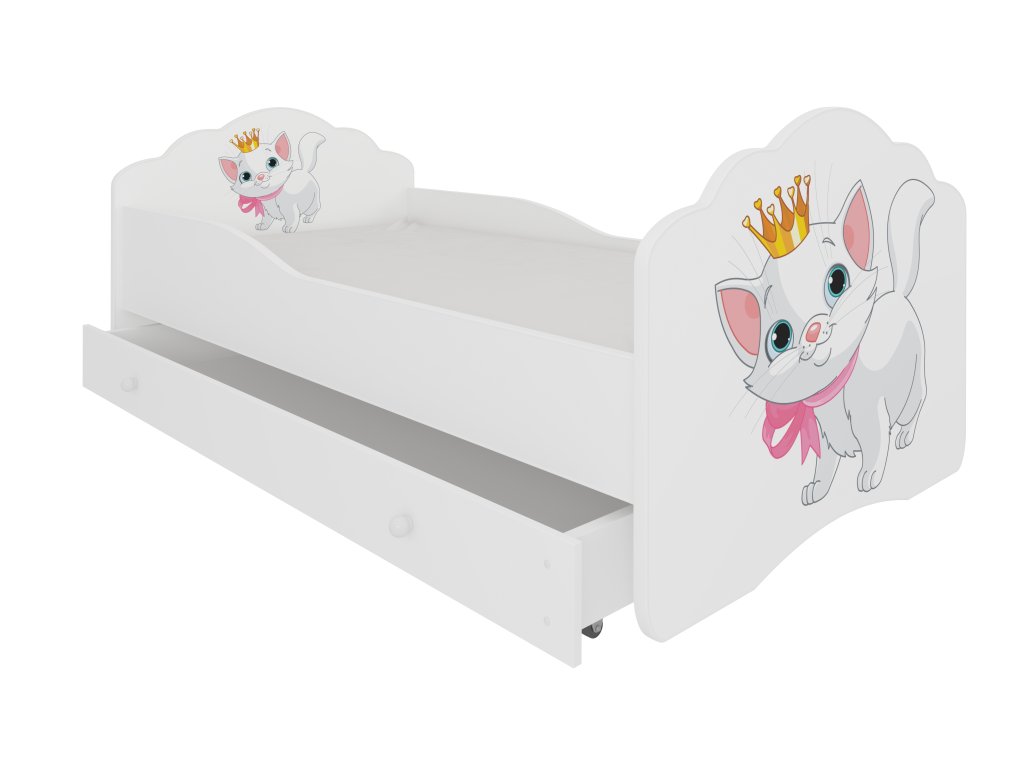 Jednolůžková postel z kolekce CASIMO s jednoduchým designem v matné bílé barvě se skvěle hodí do dětského pokoje. Díky široké nabídce grafik snadno vyberete model, který nejlépe odpovídá zájmům vašeho dítěte. Při výrobě byly použity ekologické vodou ředitelné barvy, které jsou bezpečné a odolné proti mechanickému poškození. Postel nemá ostré rohy a grafika je chráněna laminováním. Další výhodou je prostorná zásuvka na lůžkoviny a odnímatelný potah matrace na zip, který lze snadno sundat a vyprat. Postel lze doplnit o ochrannou zábranu pro zajištění bezpečnosti během spánku. Pokud potřebujete další místo na spaní, doporučujeme model CASIMO II, který má zásuvku s funkcí spaní.Doplňkové parametry