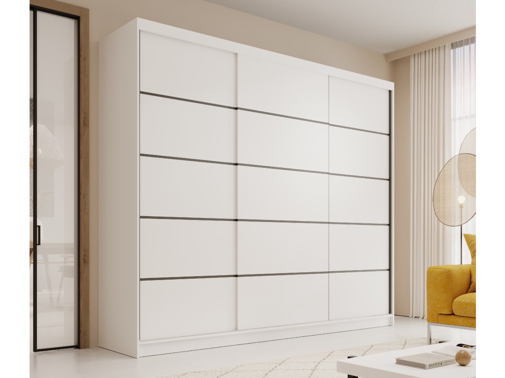 Posuvná skříň 250 Andy je funkčním a elegantním řešením pro každý interiér. Je vyrobena z laminované desky, která zaručuje odolnost a snadné čištění. Díky systému posuvných dveří skříň šetří místo a je ideální do menších místností. Jednoduchý, moderní design se skvěle hodí k různým interiérovým úpravám. Bez zrcadla zůstává minimalistická a elegantní a nabízí prostorný úložný prostor pro oblečení, lůžkoviny a další předměty. Je ideální volbou pro ty, kteří hledají funkčnost a estetiku v jednom.Doplňkové parametry