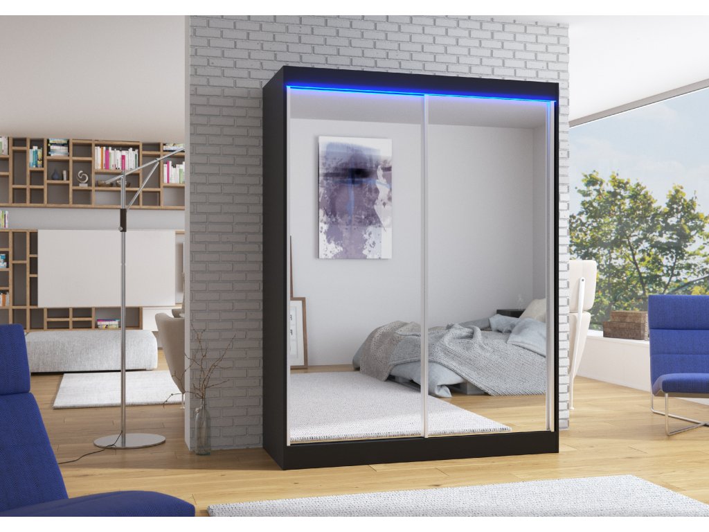Posuvná skříň se zrcadlem a LED osvětlením FLOREST 150