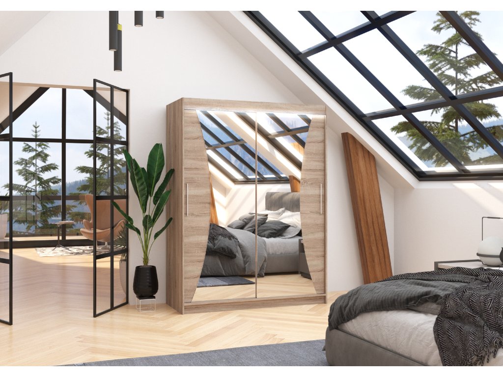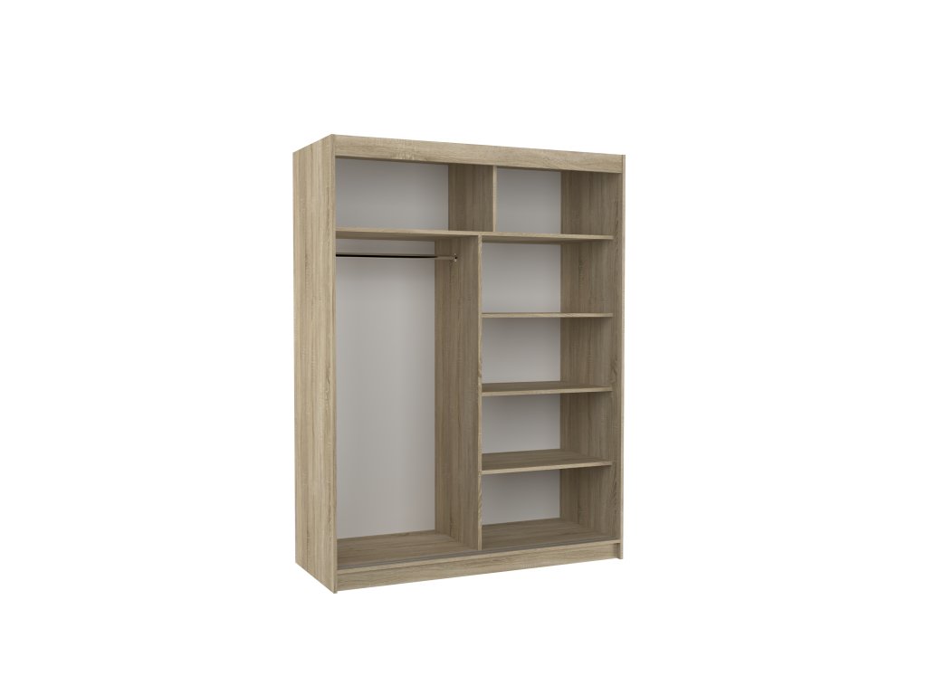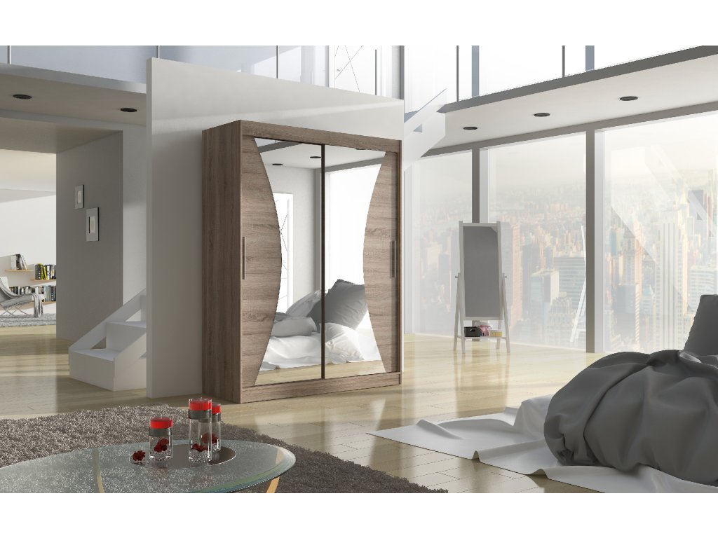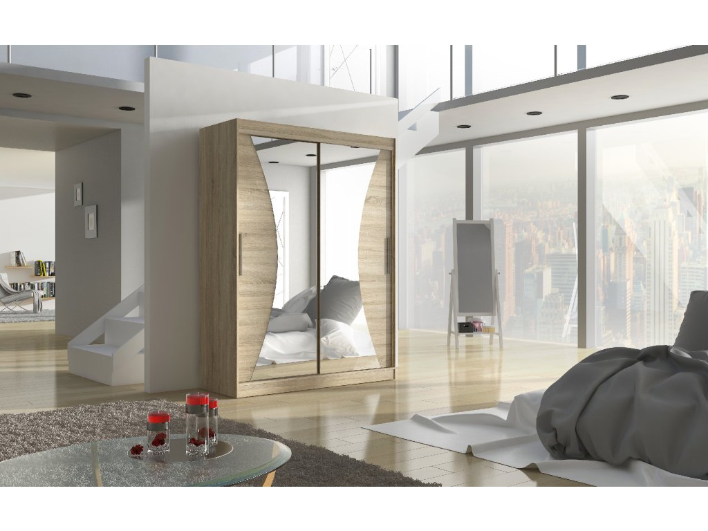 Posuvná skříň MAX se zrcadlem je ideálním způsobem, jak uspořádat svůj prostor. Nábytek je vybaven prostornými policemi a tyčí, na kterou můžete zavěsit šaty, obleky, svrchní oblečení nebo košile. Na přední straně je připevněno zrcadlo, které opticky zvětšuje prostor. Díky tomu, že je skříň posuvná, nemusíte pro otevírání dveří vyčlenit další prostor, což z ní činí ideální řešení pro malé místnosti nebo úzké chodby. Zajímavým prvkem je efektivní LED osvětlení, které dodává skříni i místnosti nádherné kouzlo.Doplňkové parametry