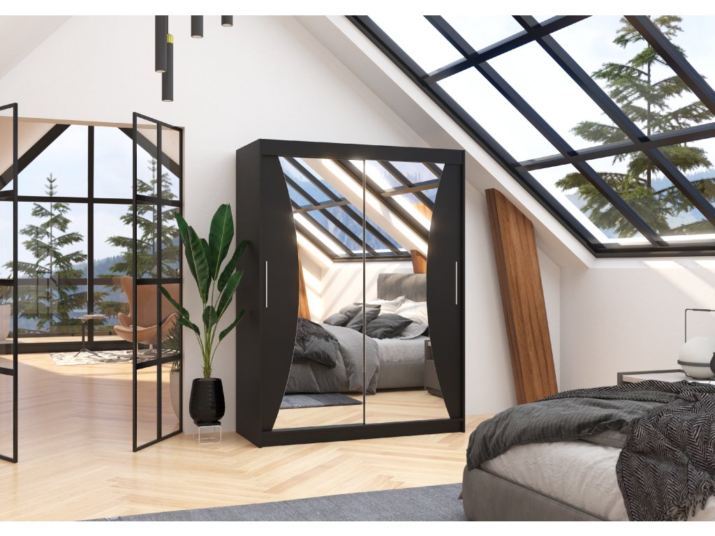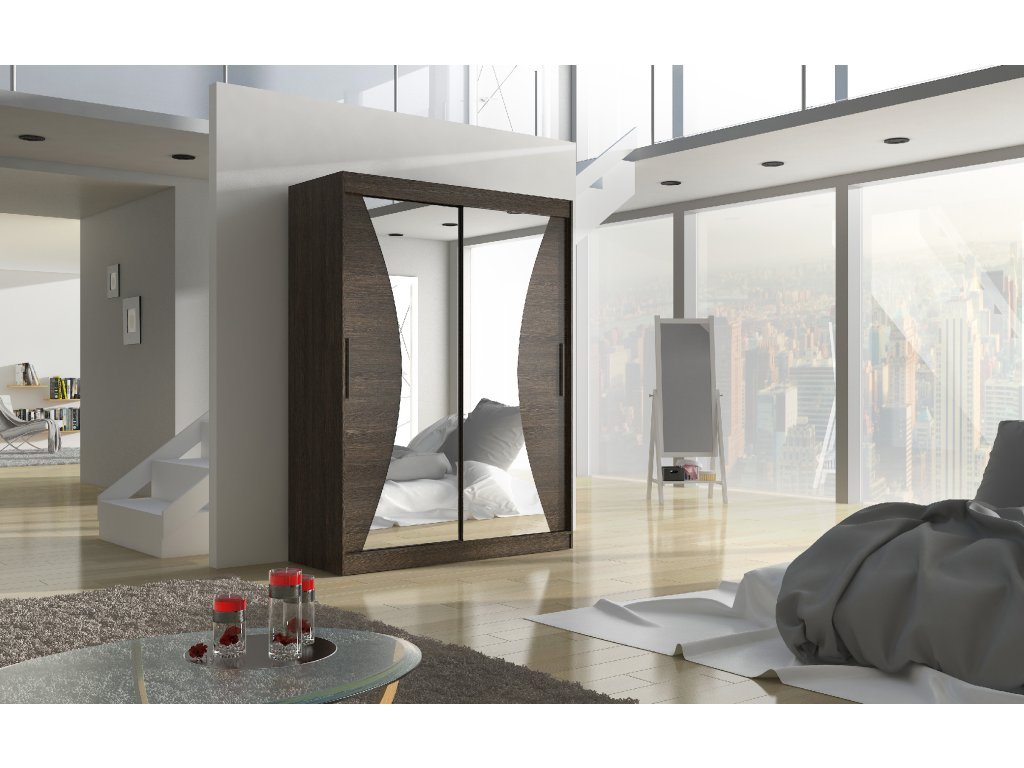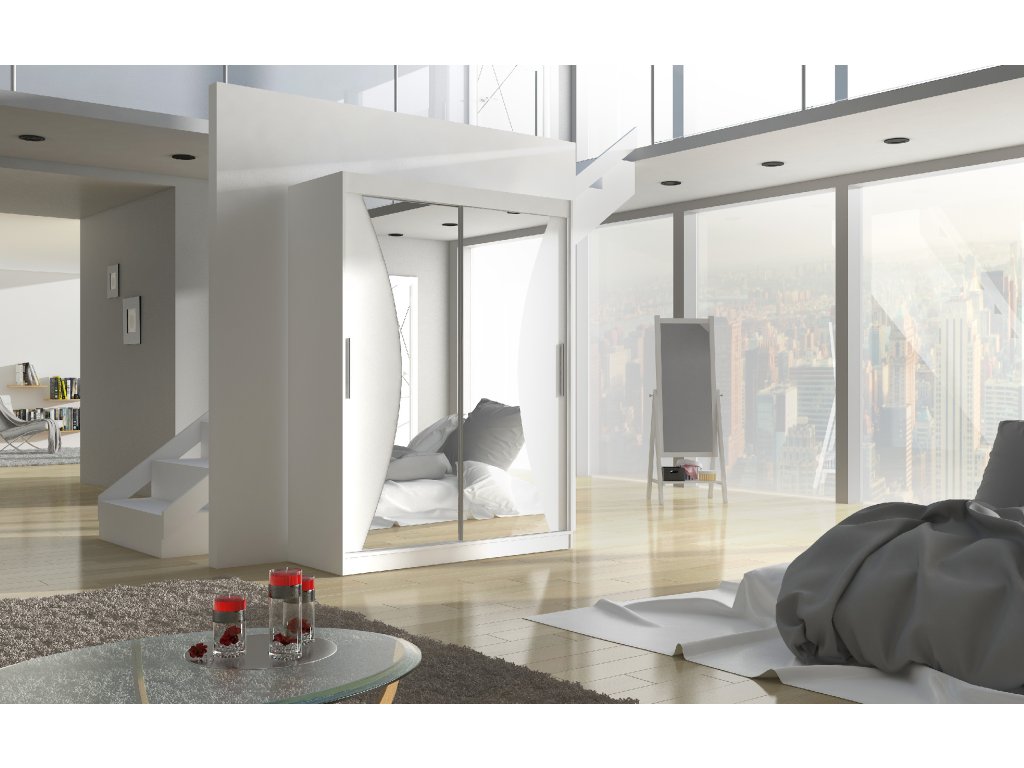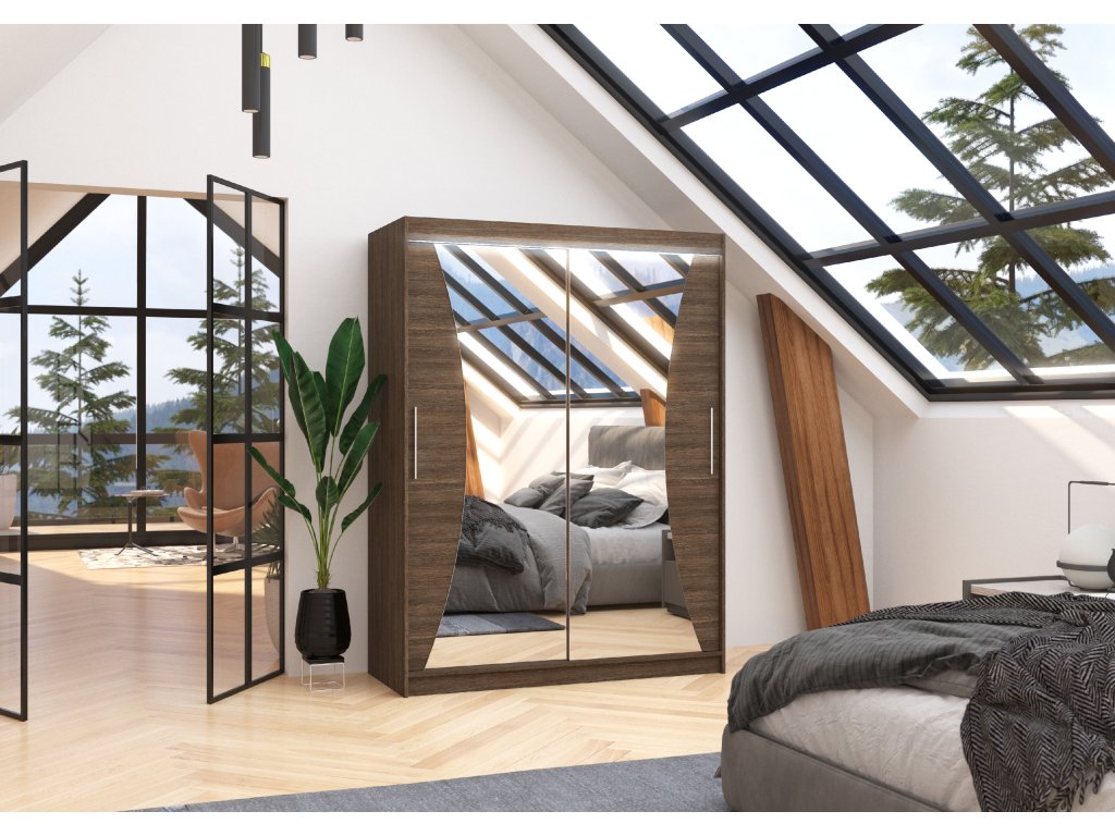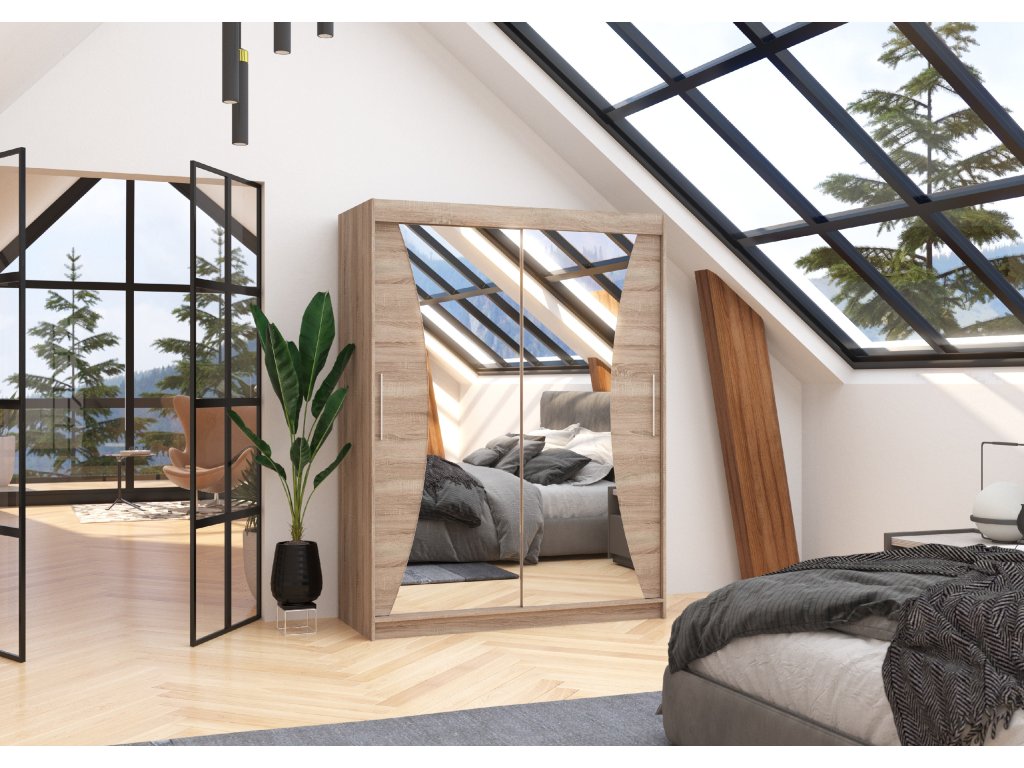 Posuvná skříň MAX se zrcadlem je ideálním způsobem, jak uspořádat svůj prostor. Nábytek je vybaven prostornými policemi a tyčí, na kterou můžete zavěsit šaty, obleky, svrchní oblečení nebo košile. Na přední straně je připevněno zrcadlo, které opticky zvětšuje prostor. Díky tomu, že je skříň posuvná, nemusíte pro otevírání dveří vyčlenit další prostor, což z ní činí ideální řešení pro malé místnosti nebo úzké chodby. Zajímavým prvkem je efektivní LED osvětlení, které dodává skříni i místnosti nádherné kouzlo.Doplňkové parametry
